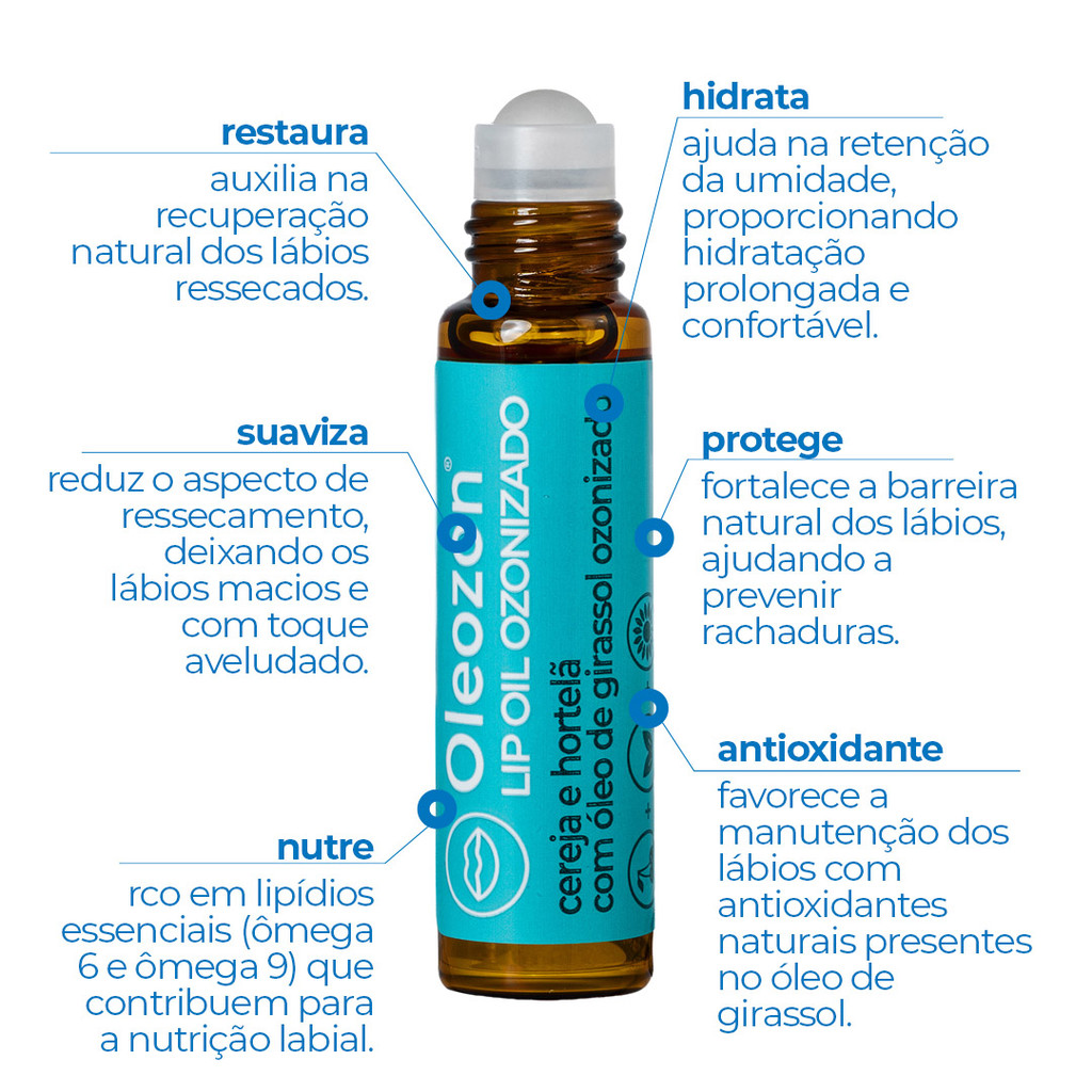 Lip Oil Ozonizado Hidratante Labial Cereja e Hortelã 5ml