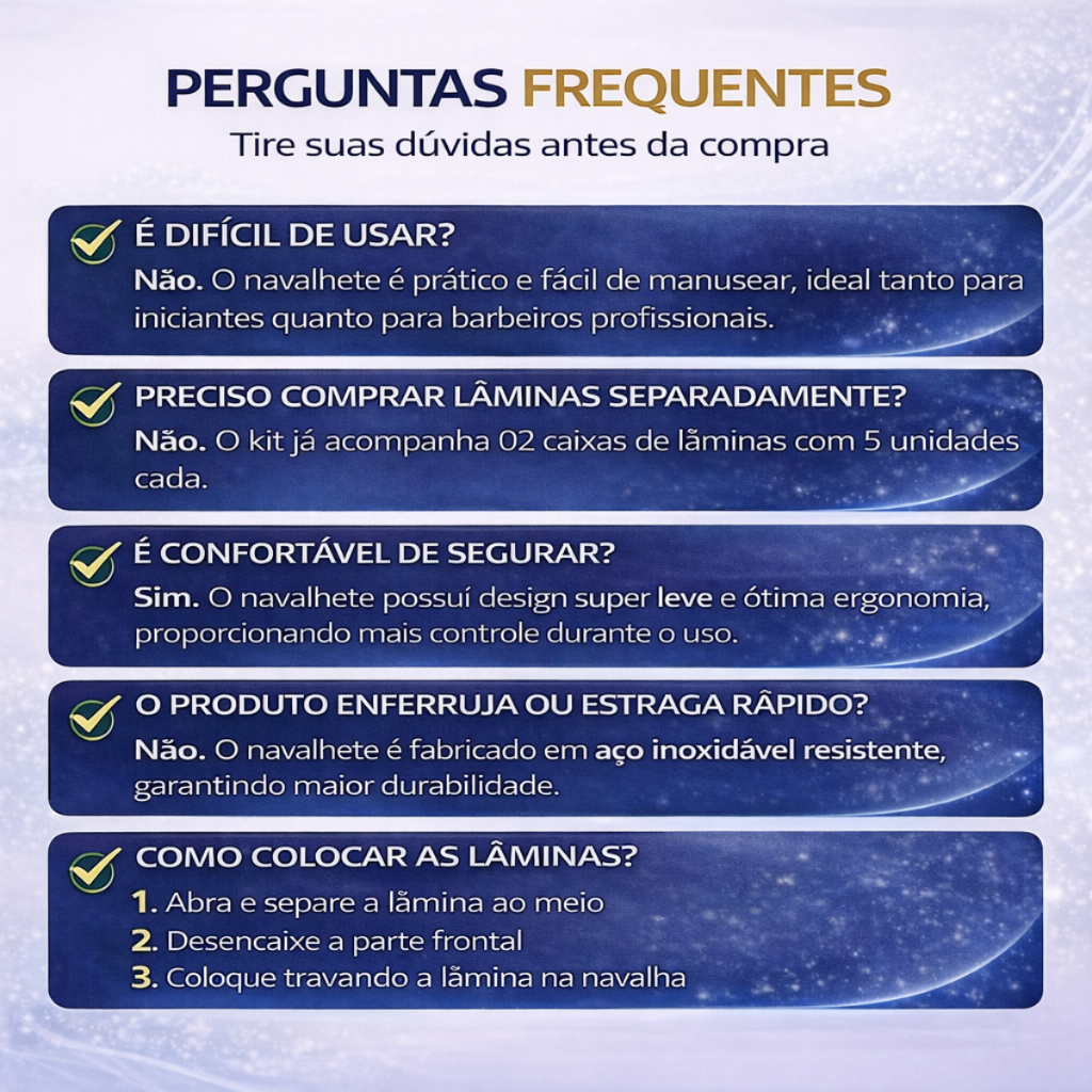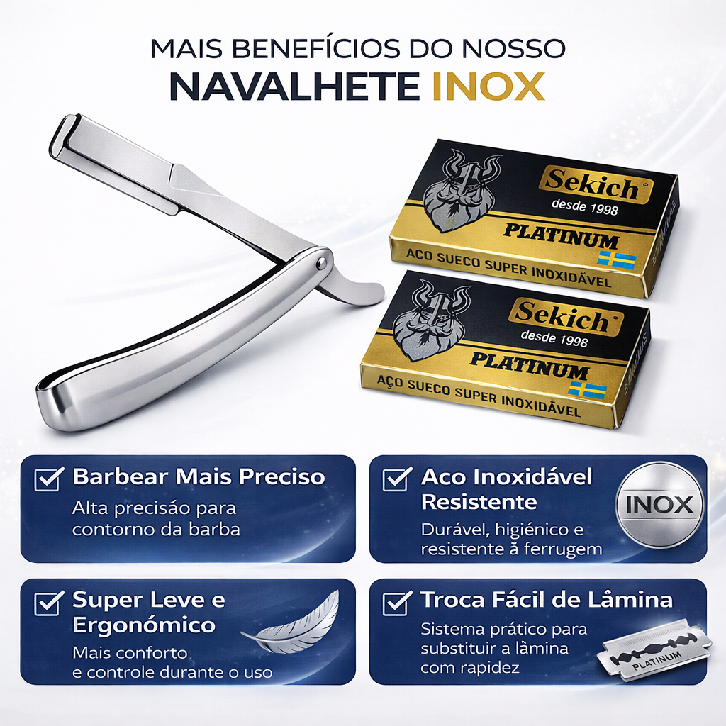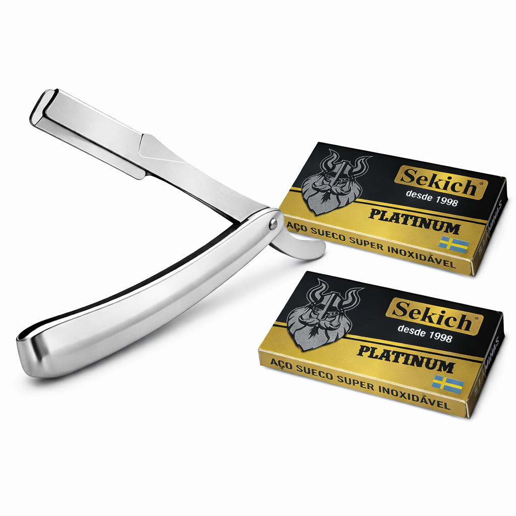 Kit Navalha Super Leve Profissional + 10 Lâminas Platinum Navalhete Inox