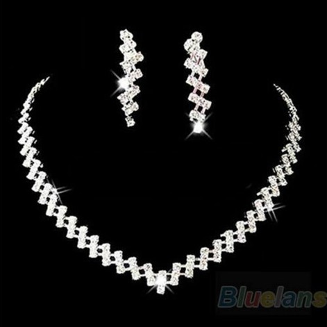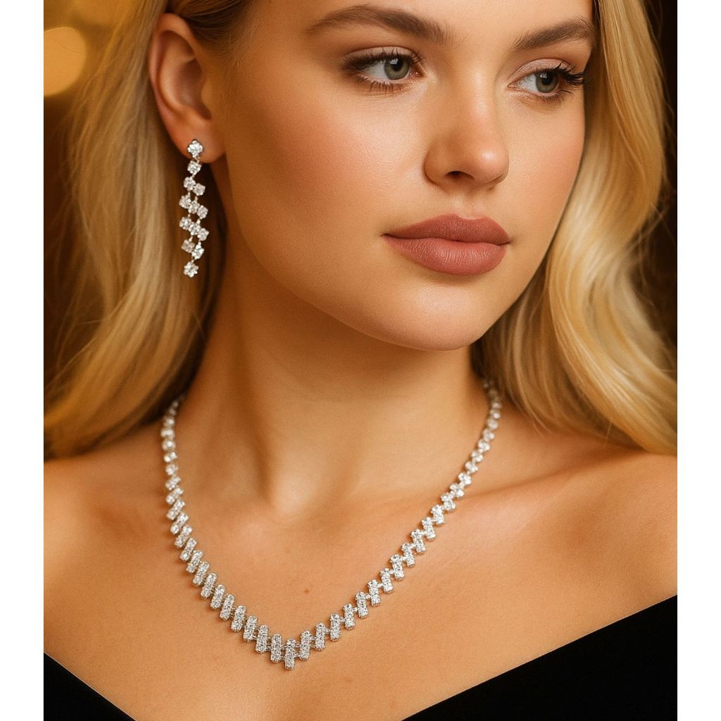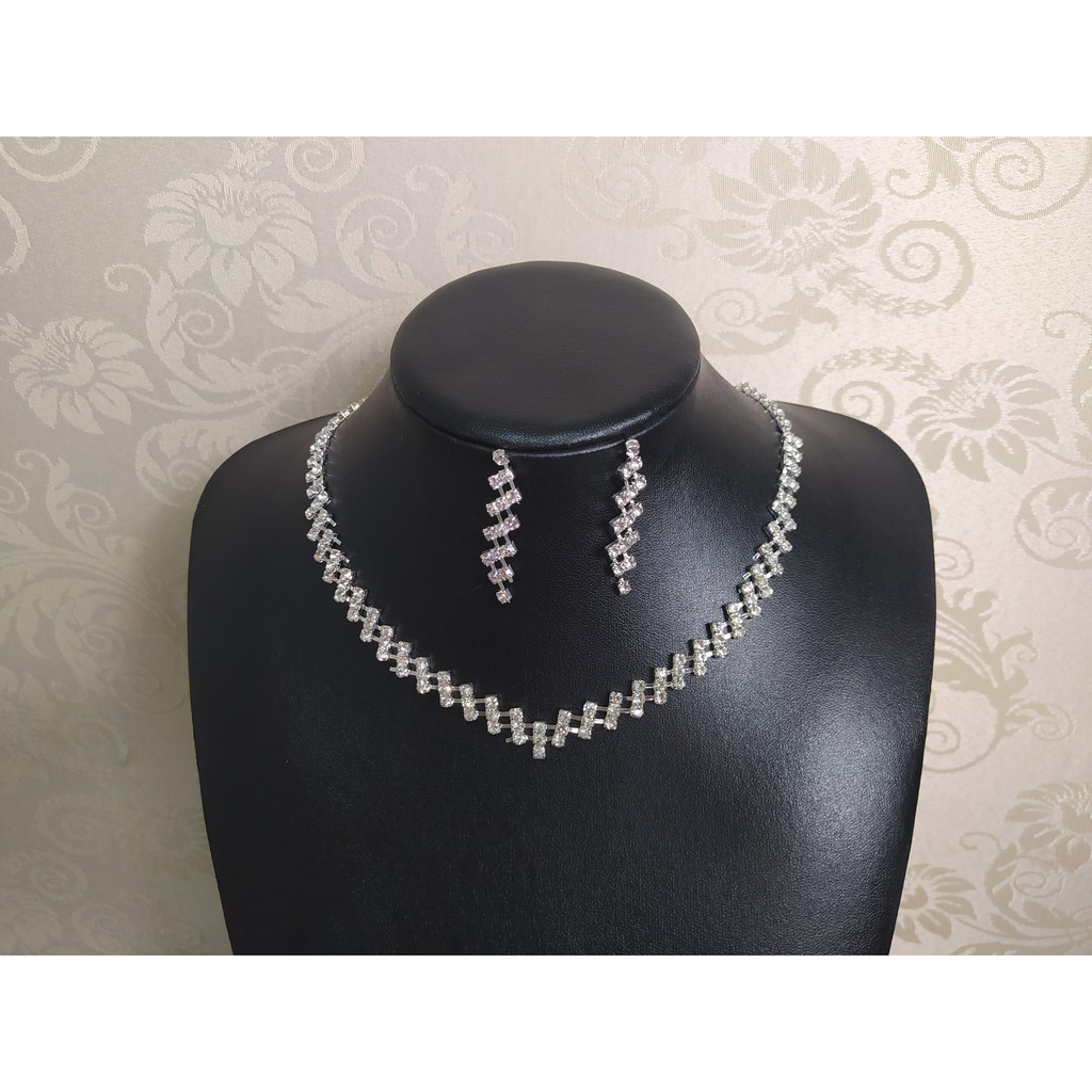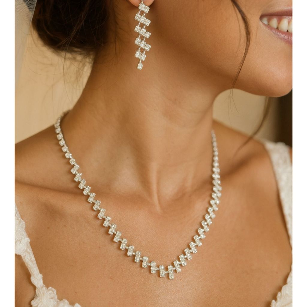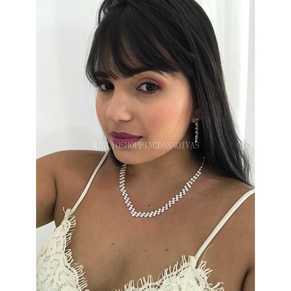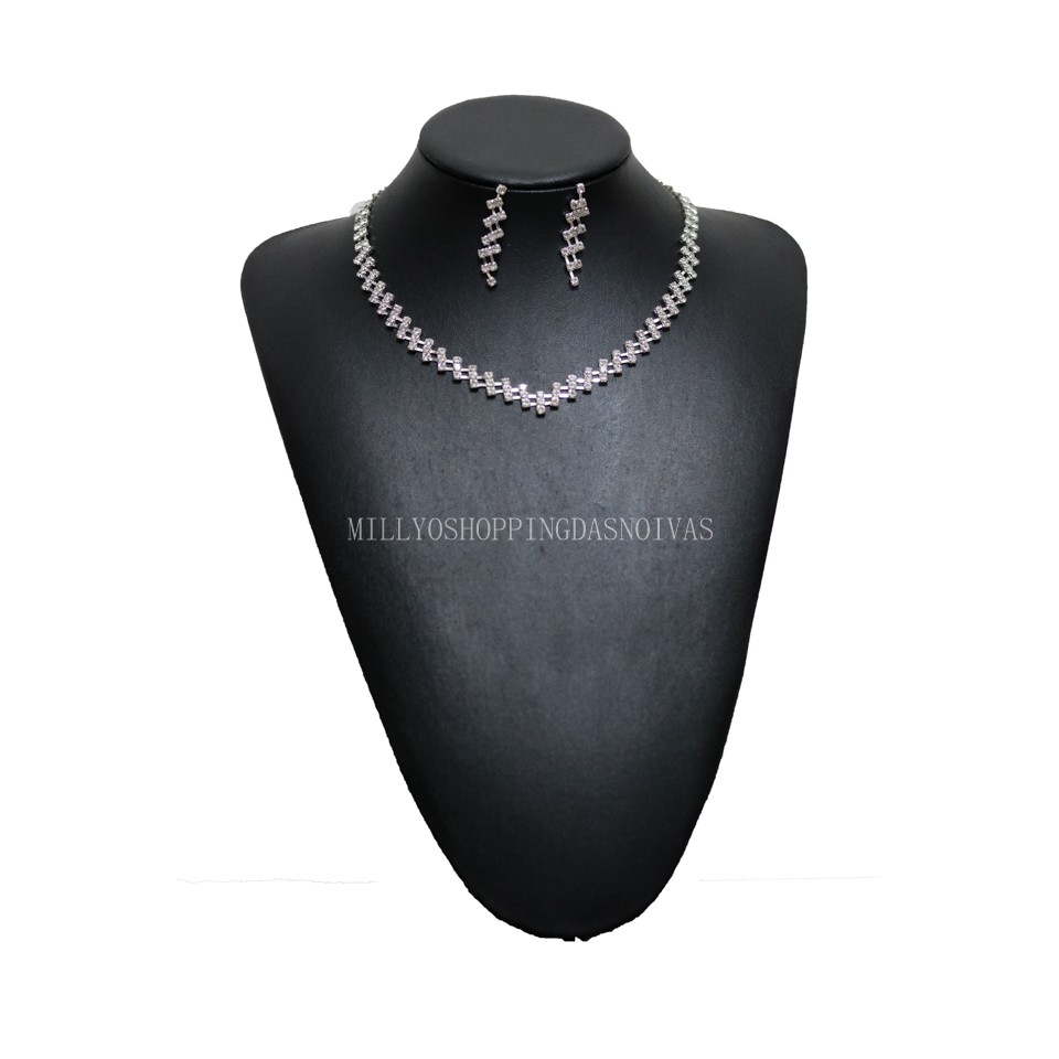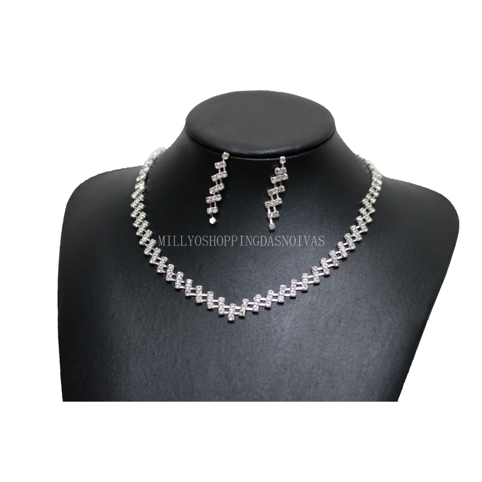 Conjunto Colar + Brinco Noiva Debutante Strass Prata C1