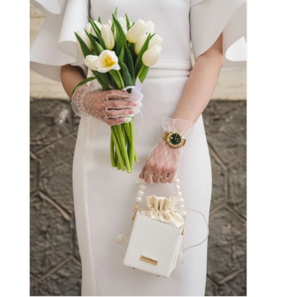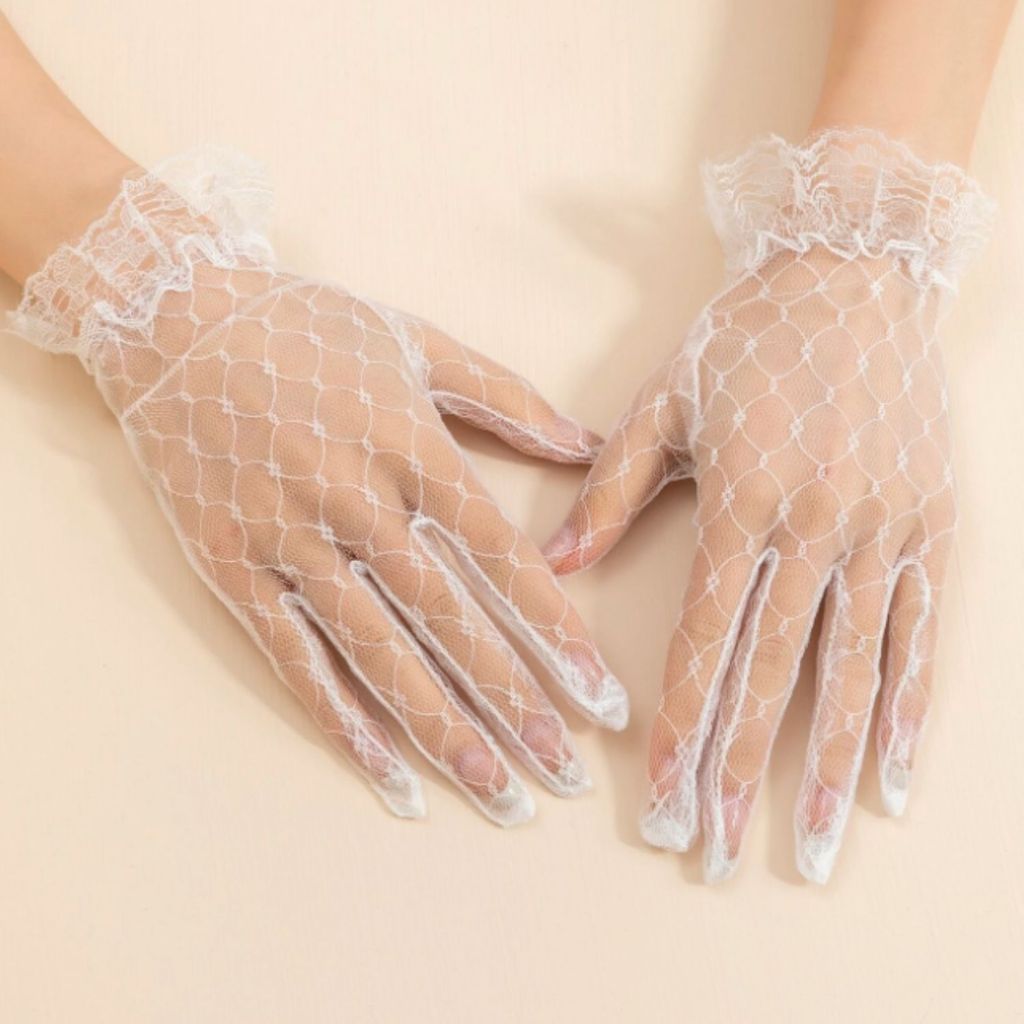 Luva De Renda Noiva curta Casamento Fantasia Branca Tulê L3
