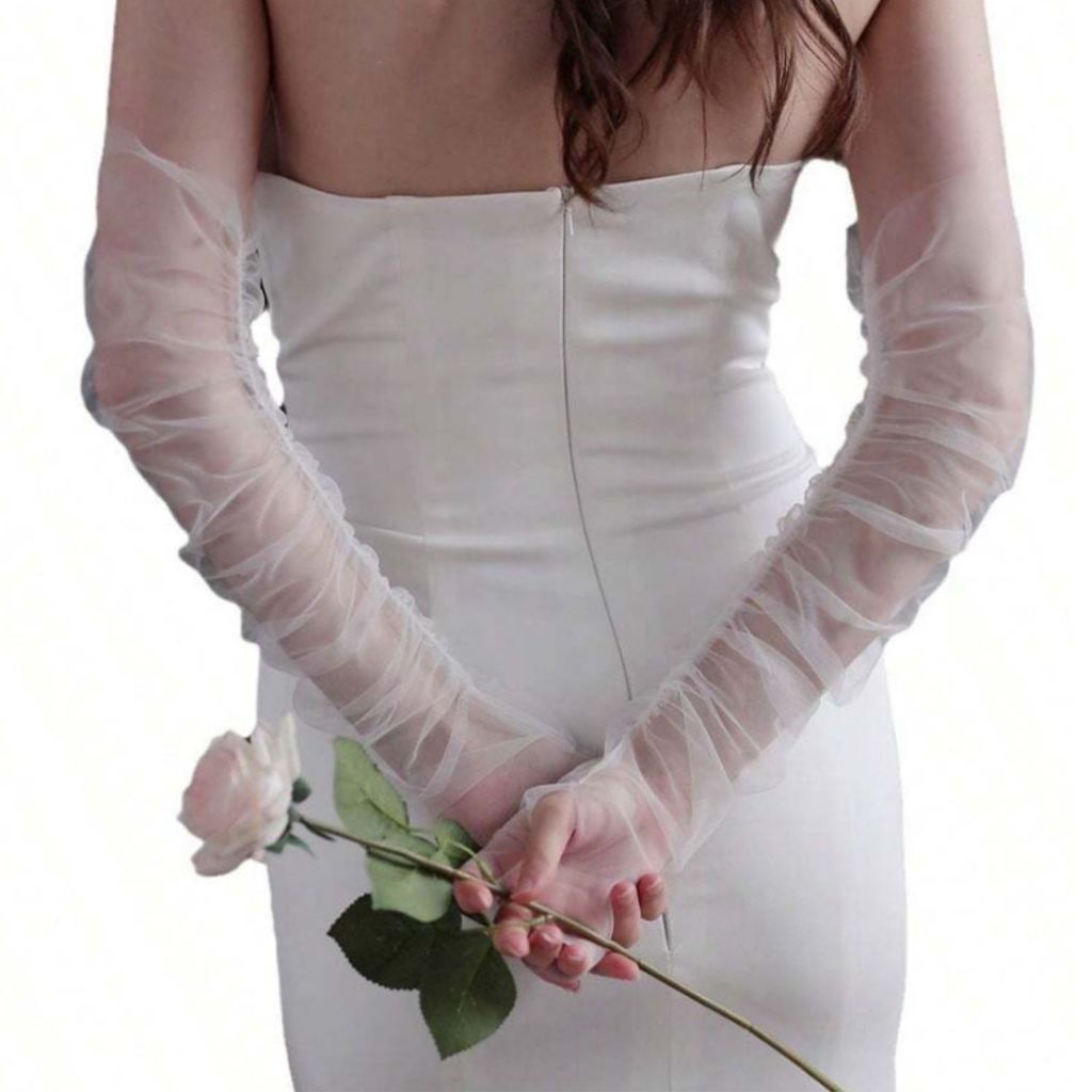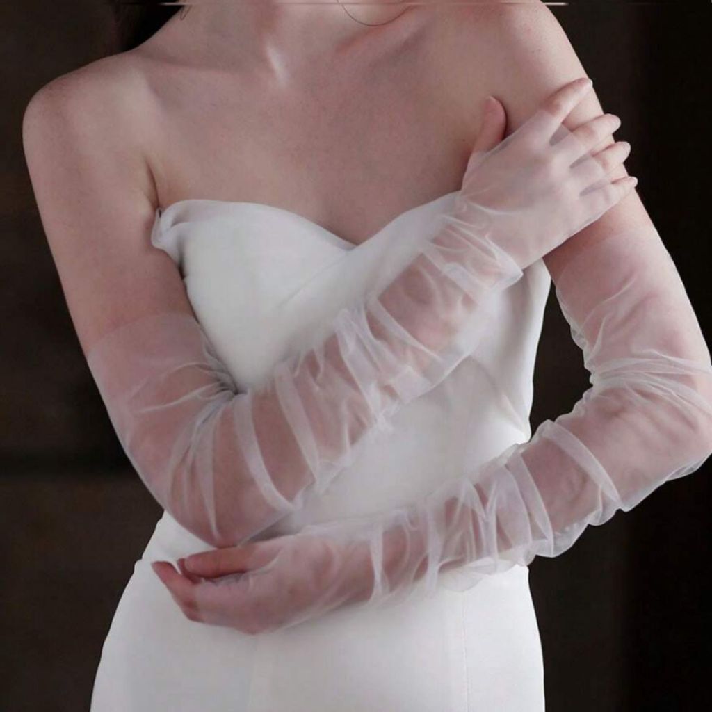 Luva Para Noiva Lisa Longa Casamento Fantasia Tulê L15