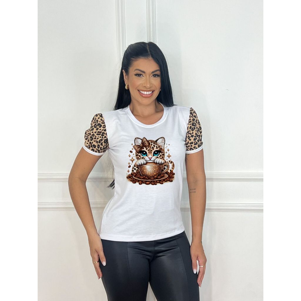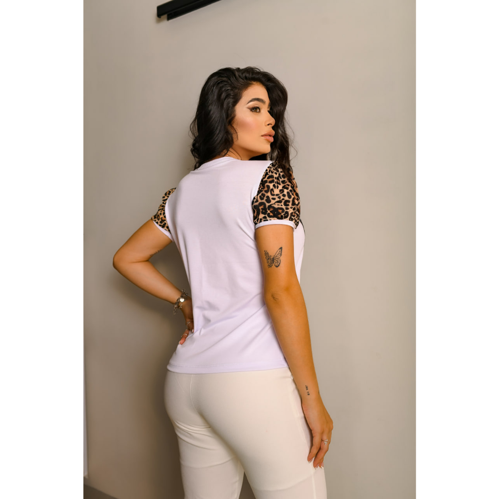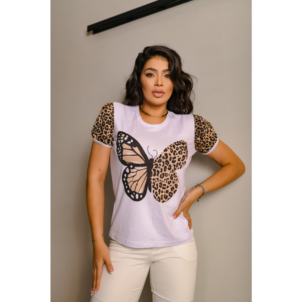 Tshirt Blusa de luxo feminina poliéster - Borboleta animal print