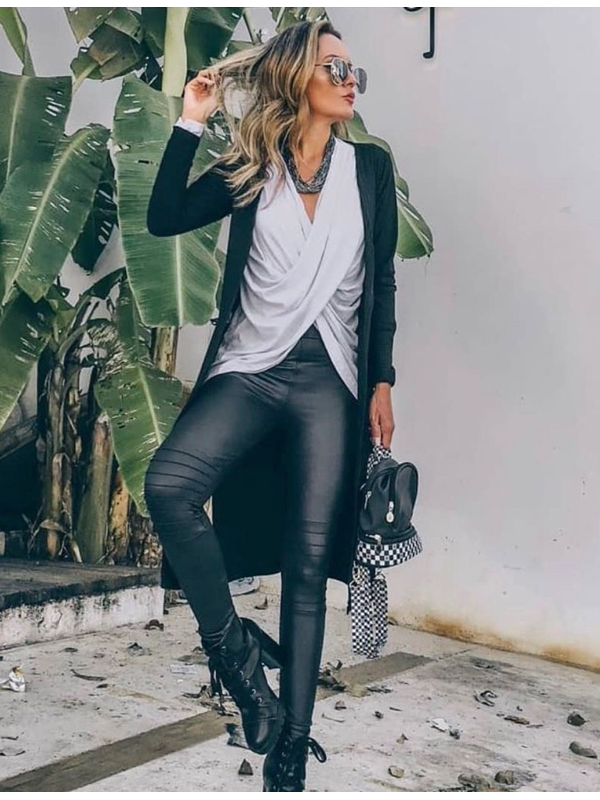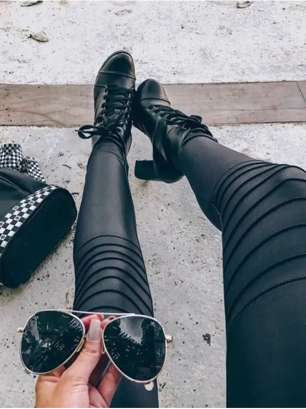 Calça Legging Montaria em Cirrê Tratorada com Efeito de Couro