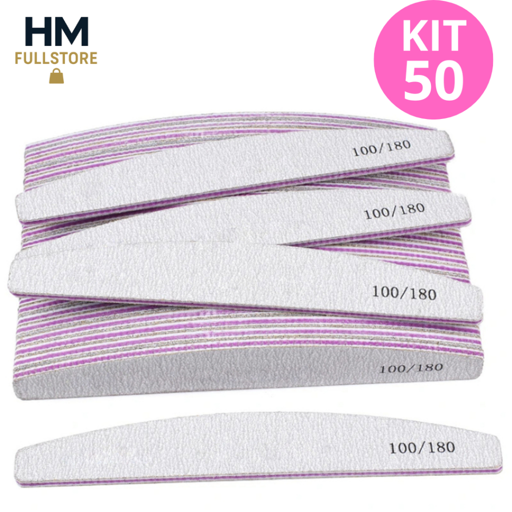 Kit 10/20/30/40/50 Lixas de Unha Bumerangue Lavável 100/180 Boomerang Caixão Banana Alongamento Gel