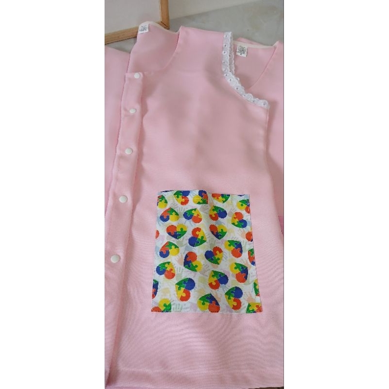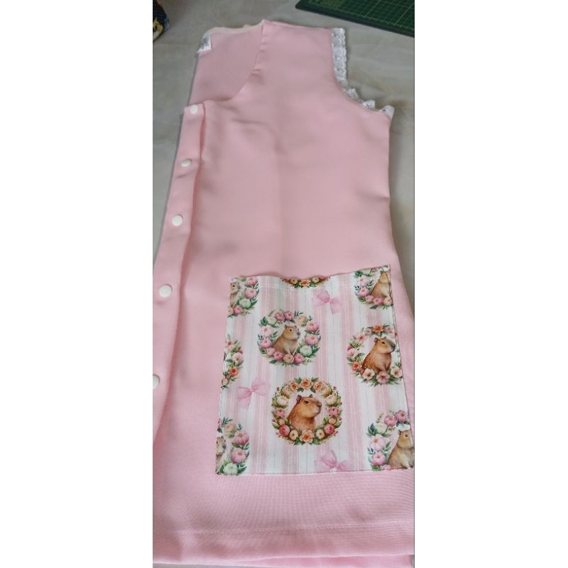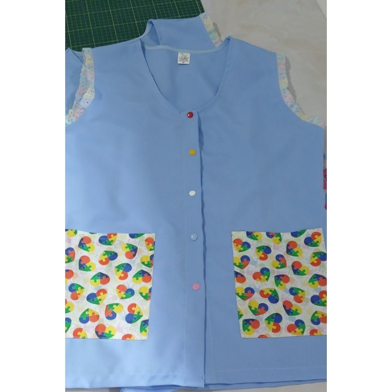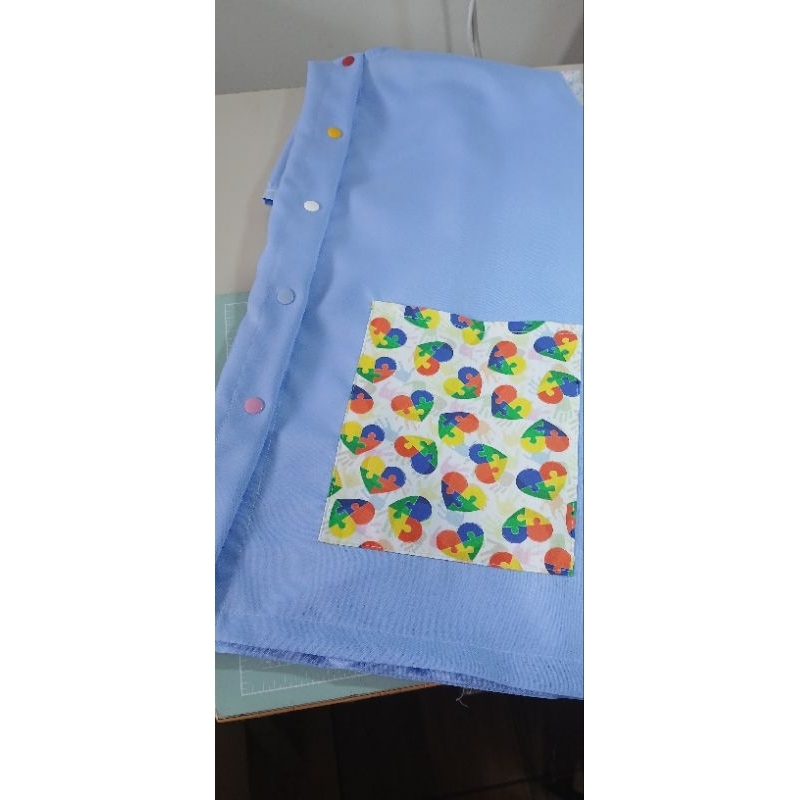 Avental jaleco para professora e ou cuidadora personalizado com o nome e bolsos estampados.