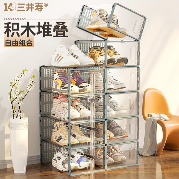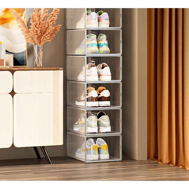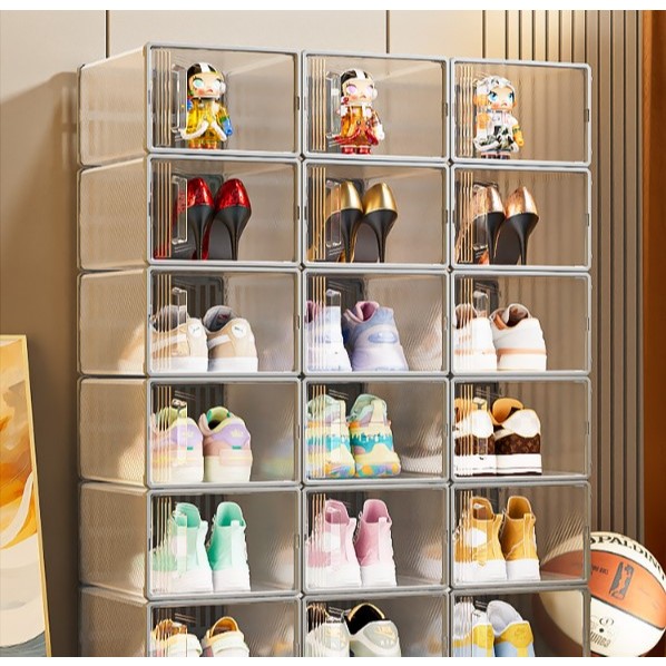 Kit 6/12/17un Caixa Organizadora Para Tênis Sapato Multiuso Empilhável Tampa Flip