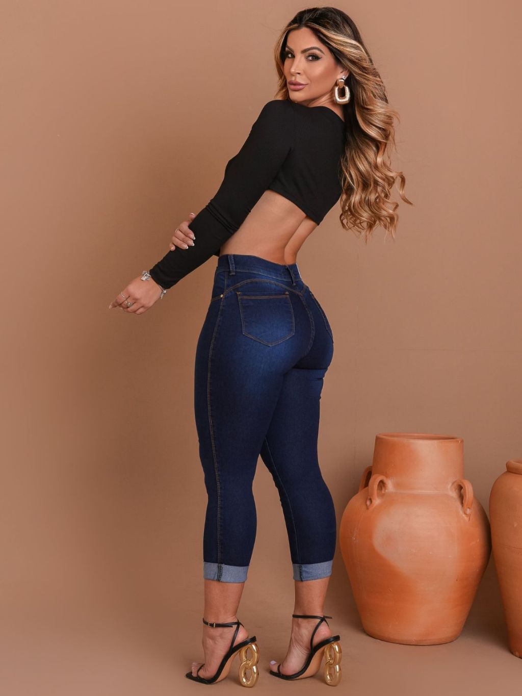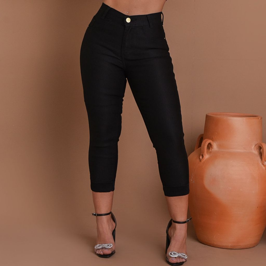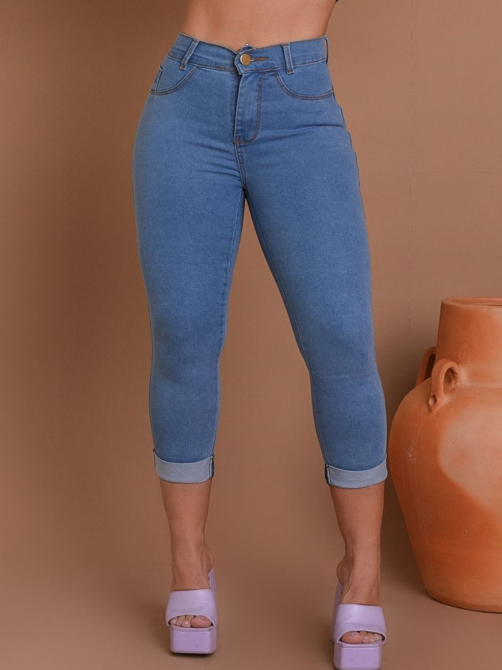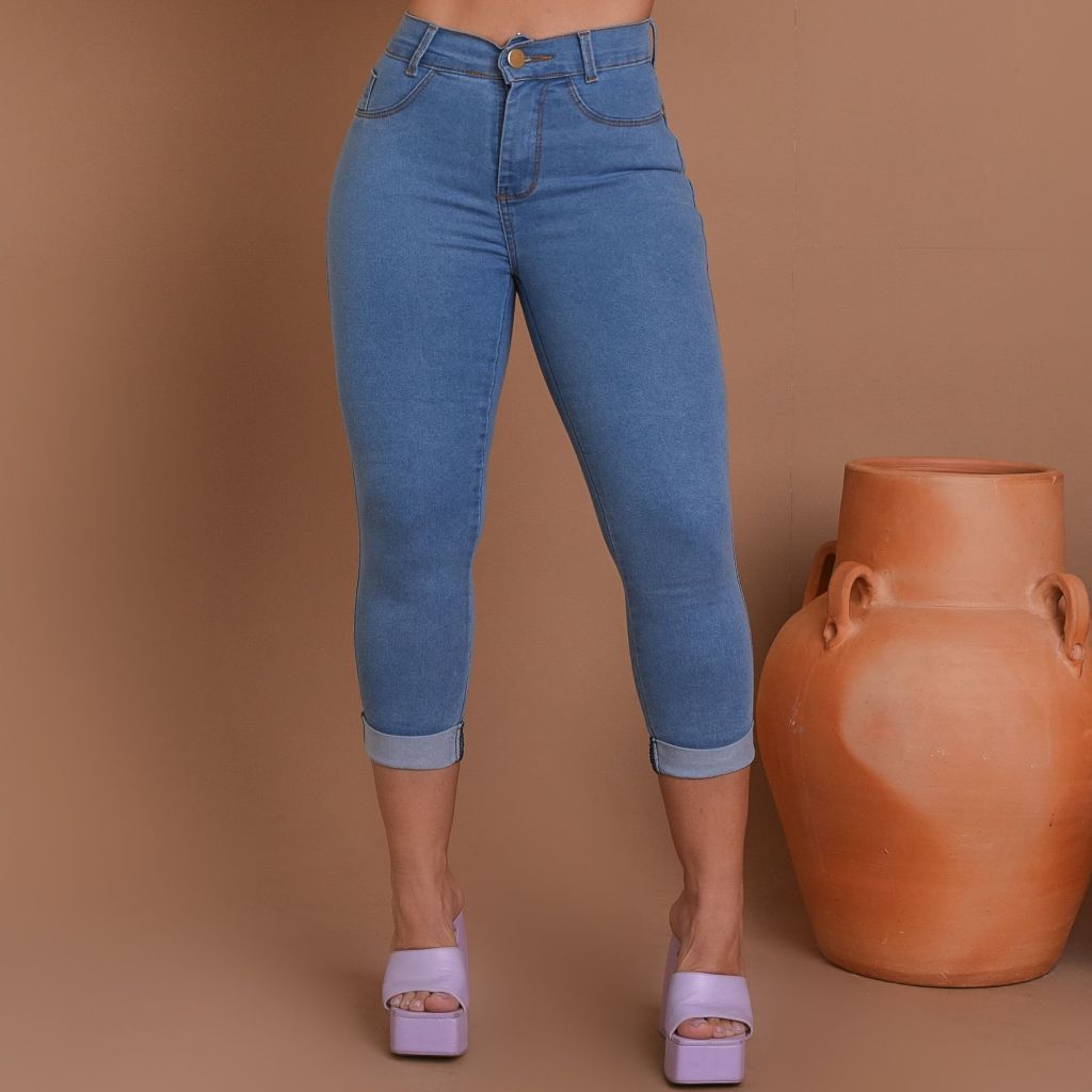 Calça Jeans Feminina Capri Cintura Alta Empina Bumbum Com Elastano Lycra