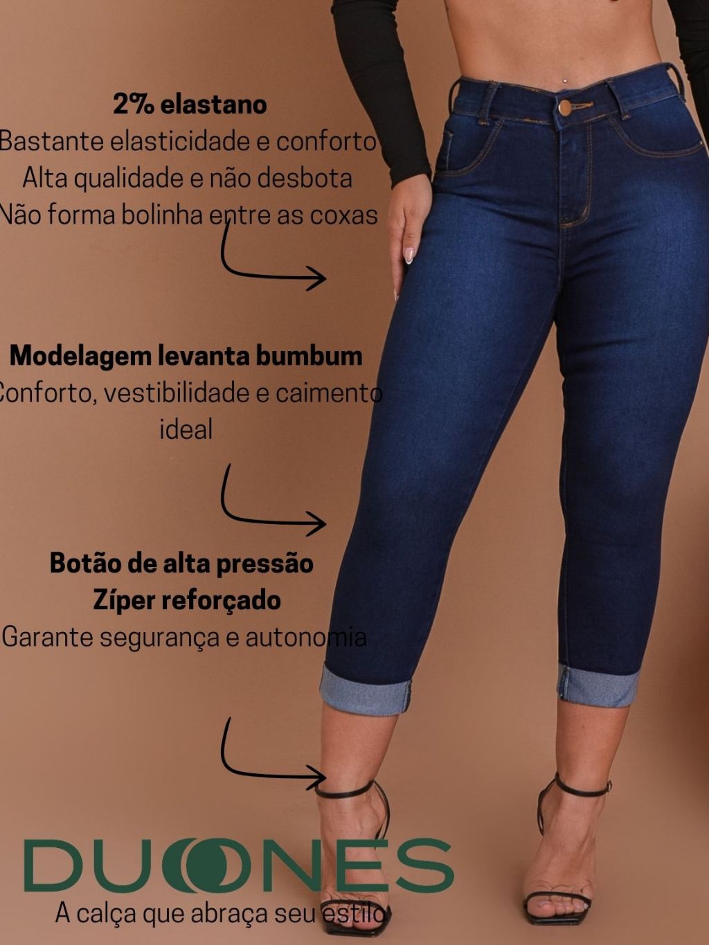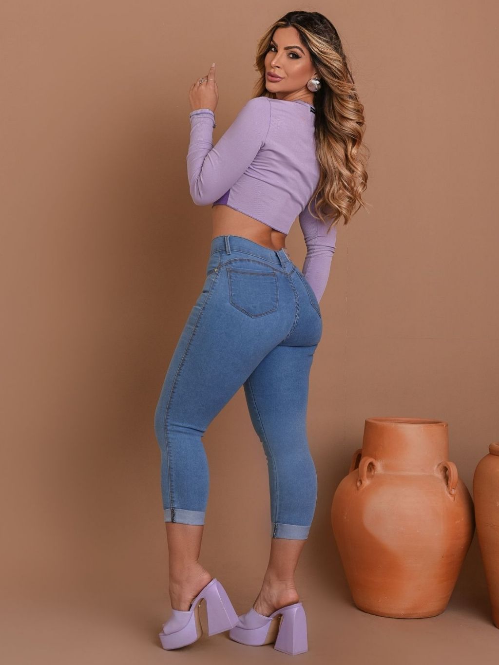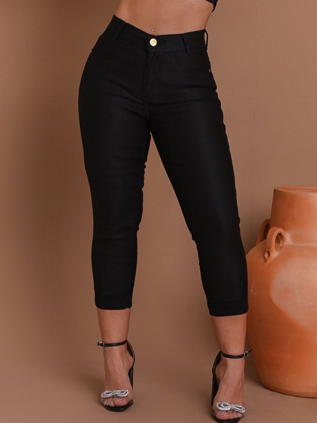 Calça Jeans Feminina Capri Cintura Alta Empina Bumbum Com Elastano Lycra