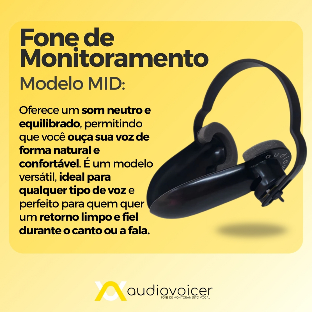 Fone de Monitoramento Vocal MID Retorno da Própria Voz com Clareza para Treino e Prática Vocal