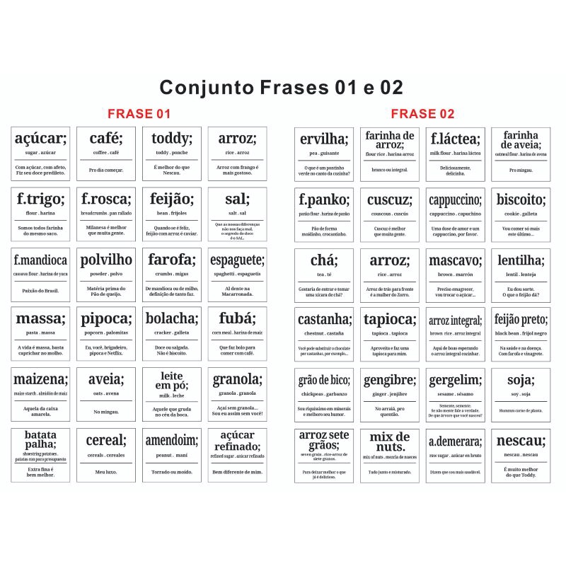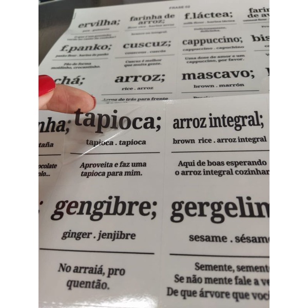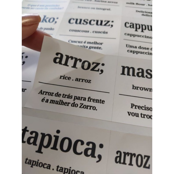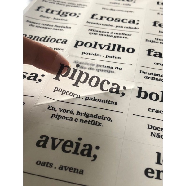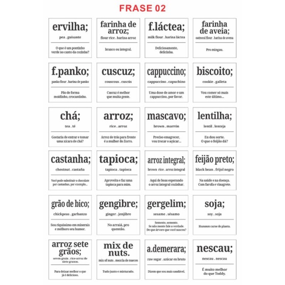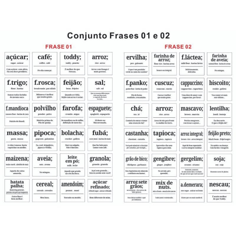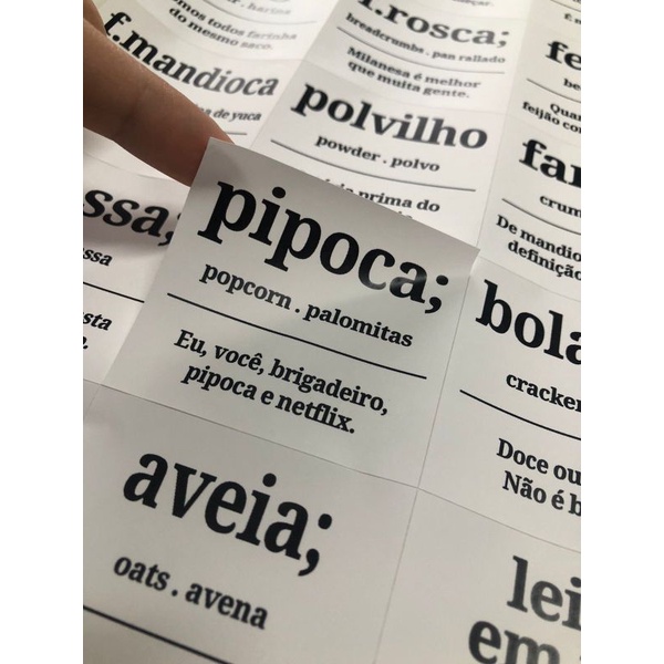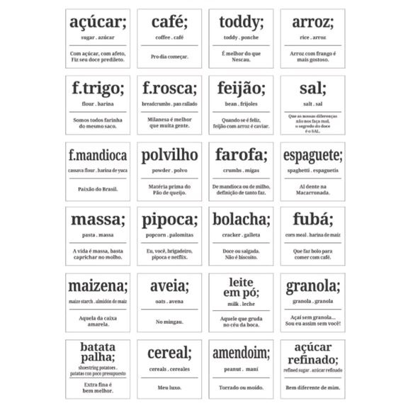 Mantimentos com 24 Etiquetas Adesivas Rótulos 6x5,5cm - Estilo Dicionário Divertido
