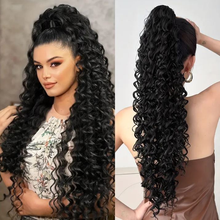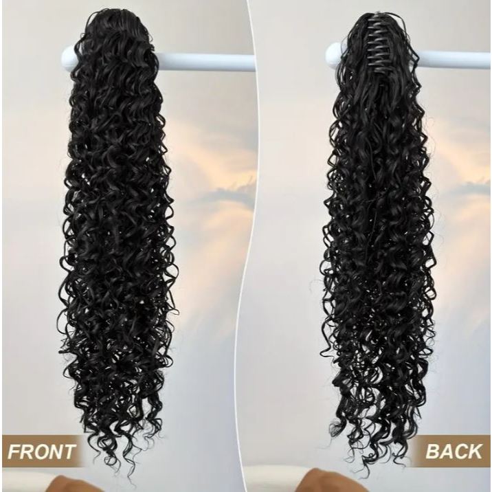 Aplique Rabo de Cavalo Cacheado Com Piranha 60cm Organico