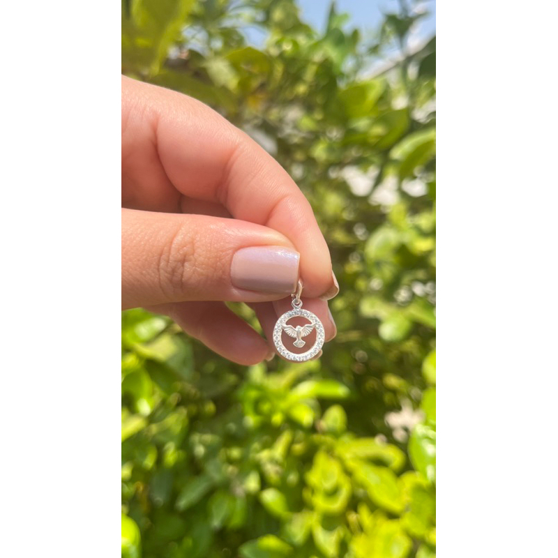 Berloque ou pingente sem corrente de Espírito Santo cravejado prata 925 legítima