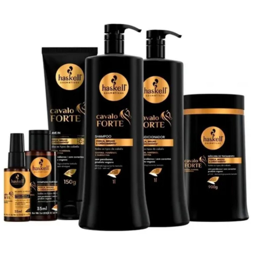 Kit Haskell Cavalo Forte 1L Shampoo+Condicionador+Máscara 900g+Leave-In+Complexo+Selante Original
