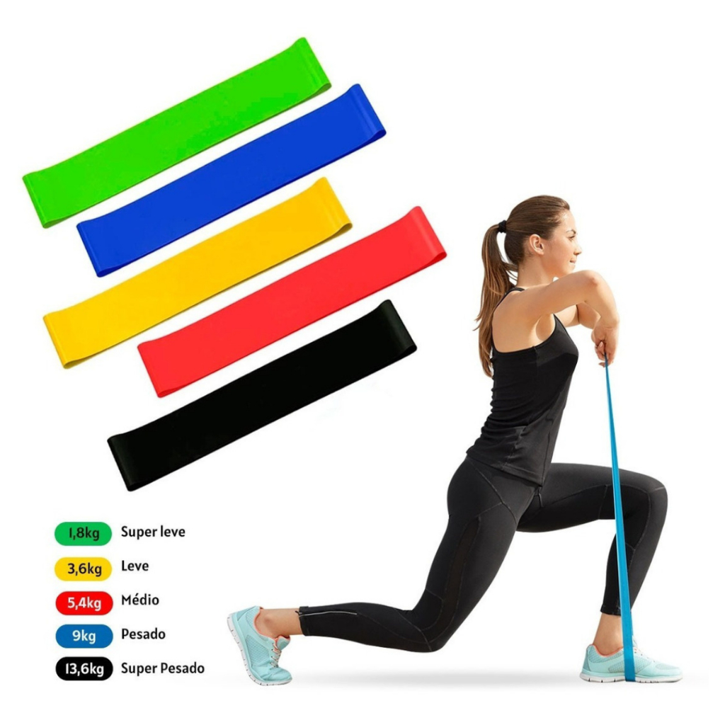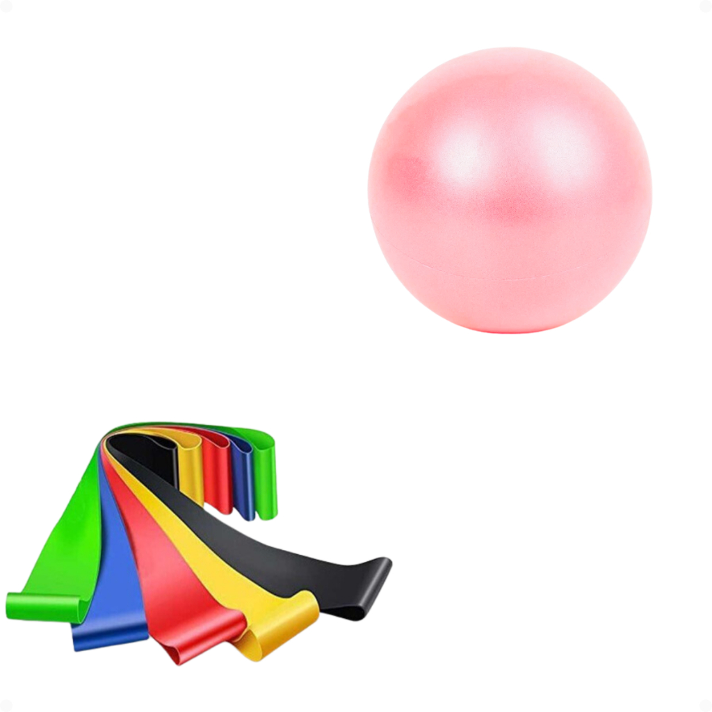 Kit 5 Faixas Elásticas Miniband + Bola Pilates 25cm Treino Yoga Funcional em casa Fisio Força Perna