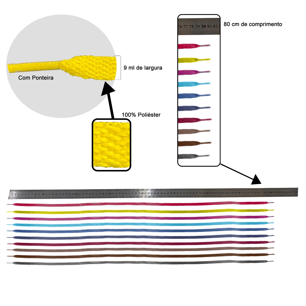 Cadarço Infantil Criança Atacador Chato de Algodão Colorido Para Calçados e Tênis Promoção