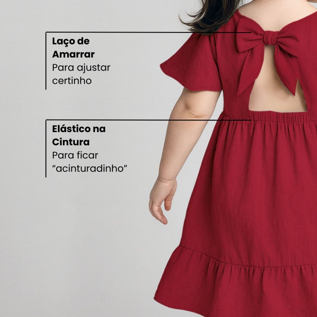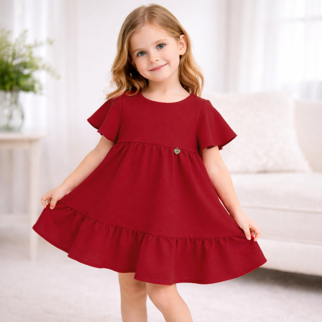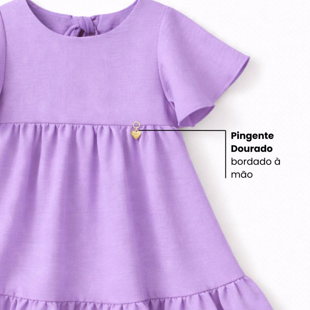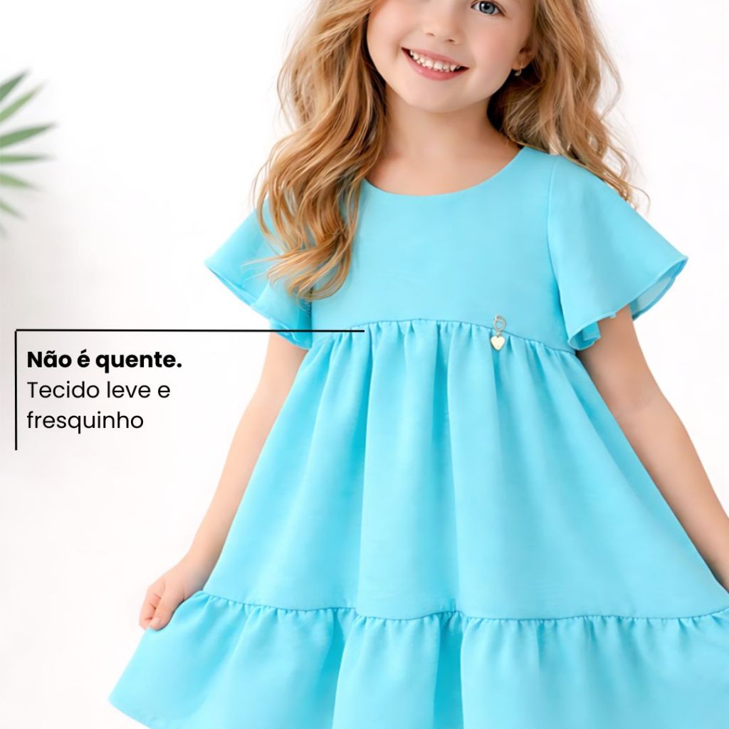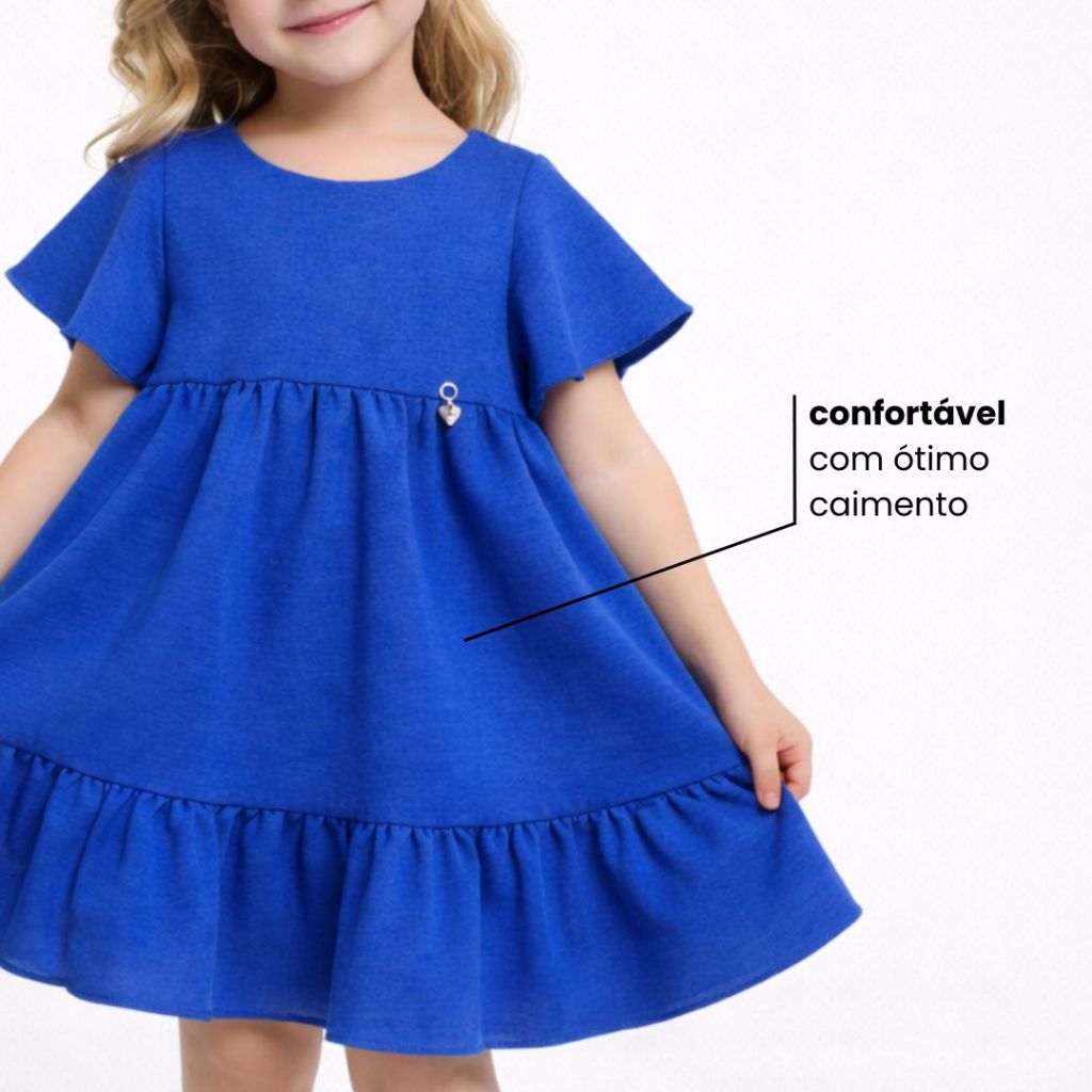 Vestido Infantil Liso Rodadinho com Manguinha e Babado para Festas 2 a 8 anos