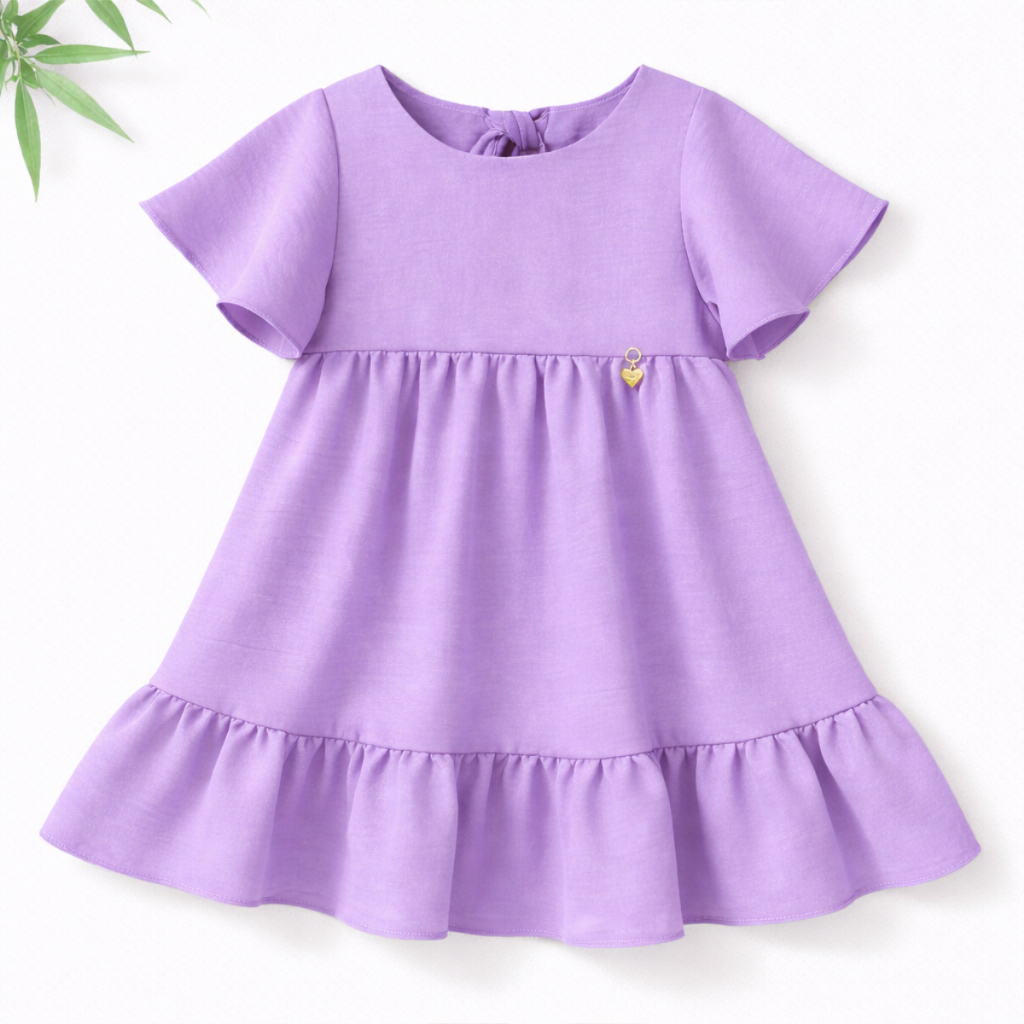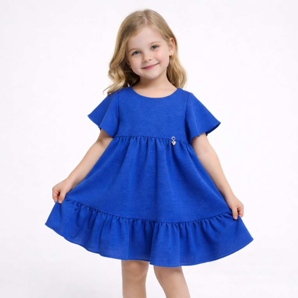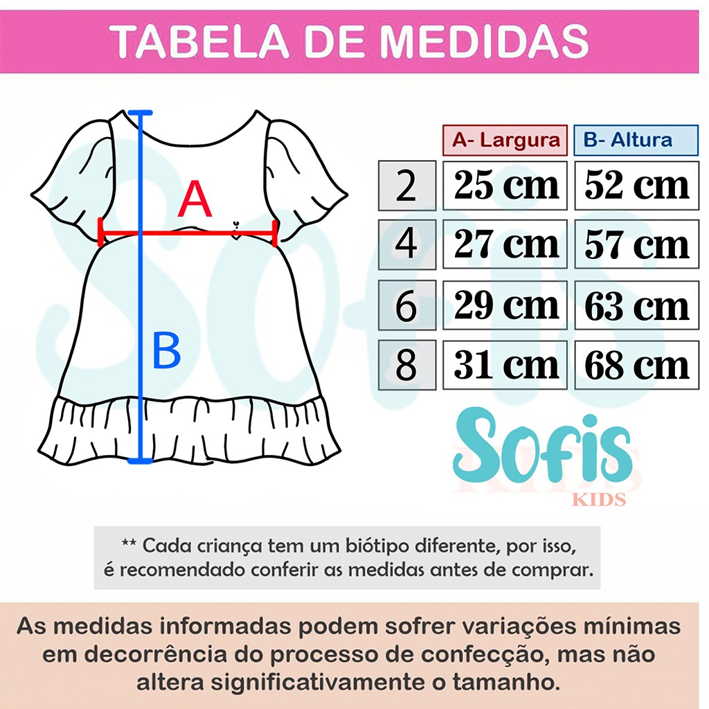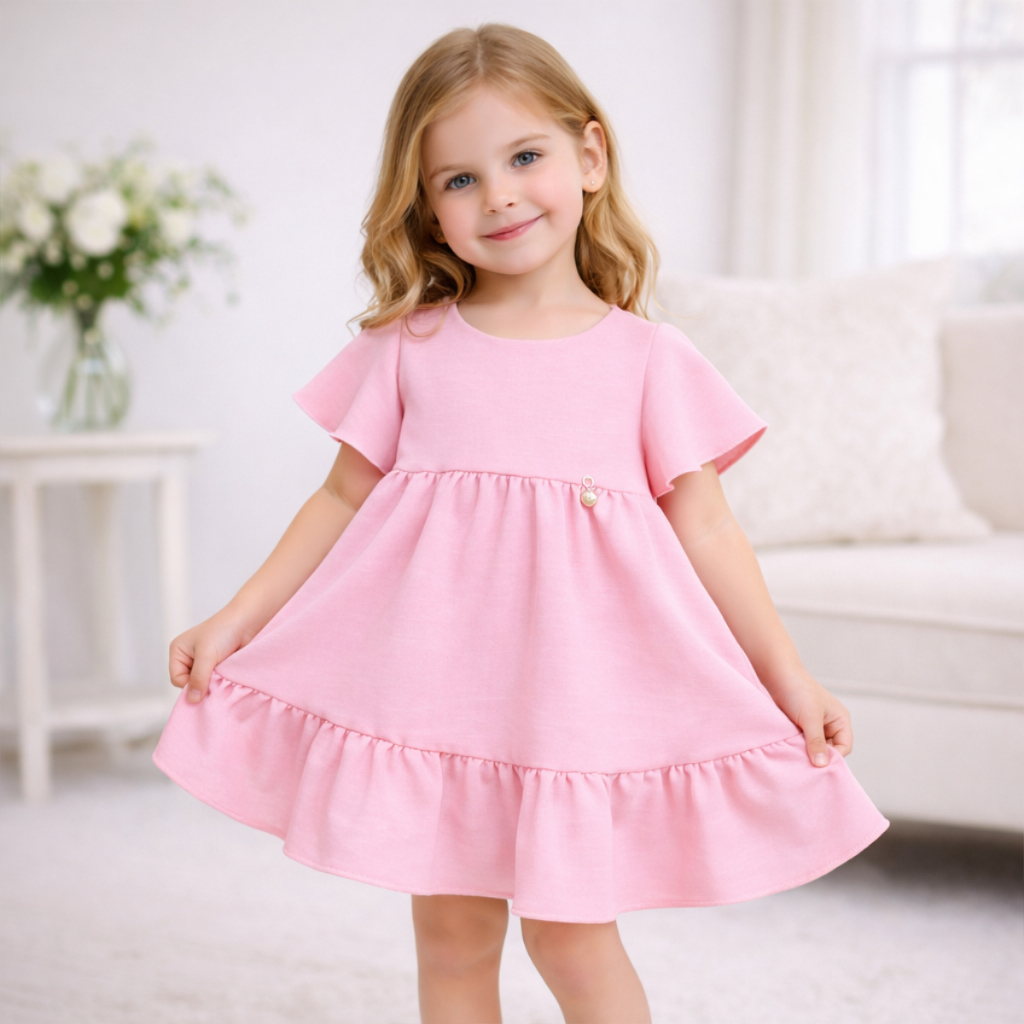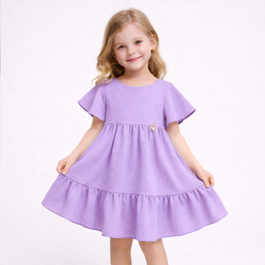 Vestido Infantil Liso Rodadinho com Manguinha e Babado para Festas 2 a 8 anos