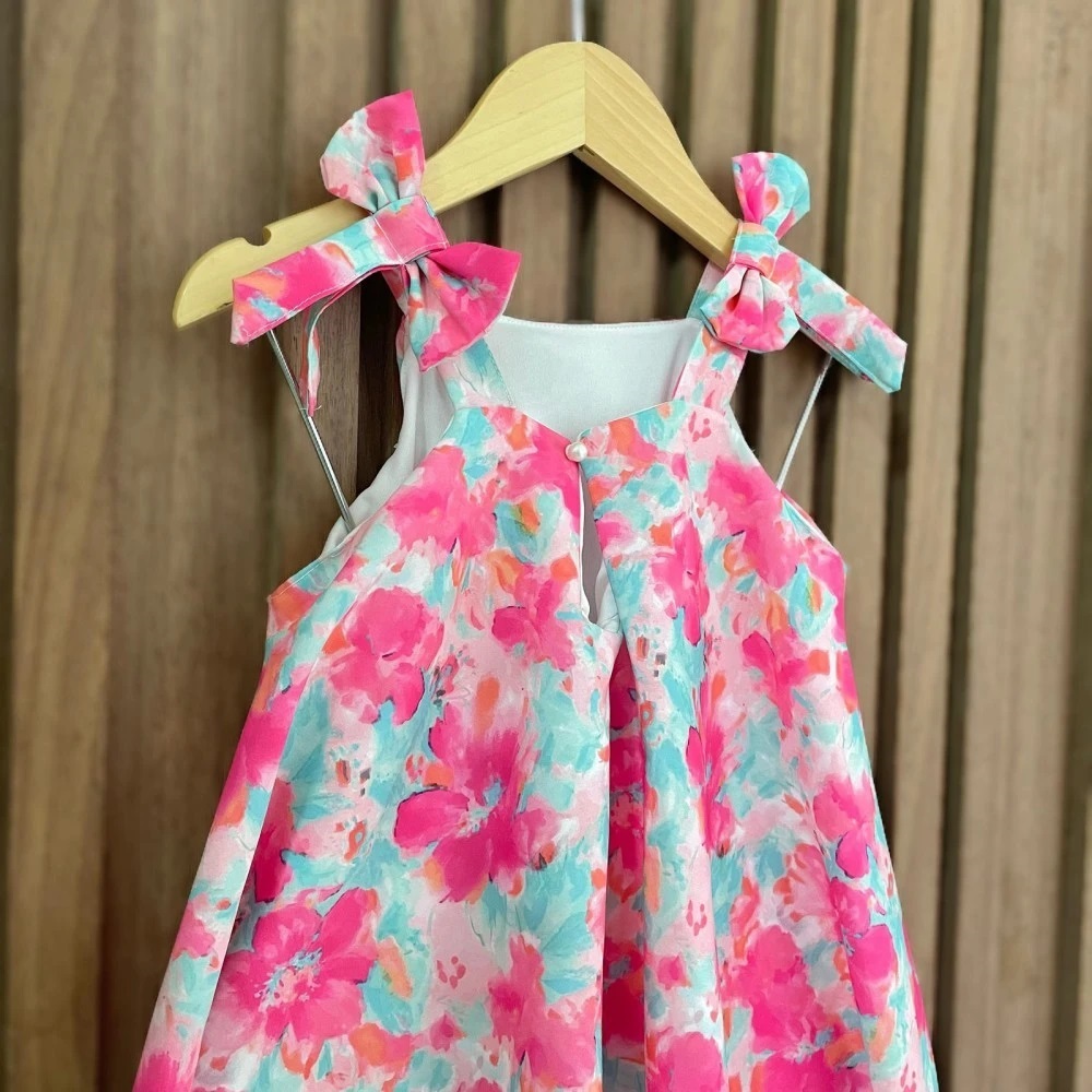 Vestido Infantil Trapézio Rodado com Forro Delicado Elegante para Menina