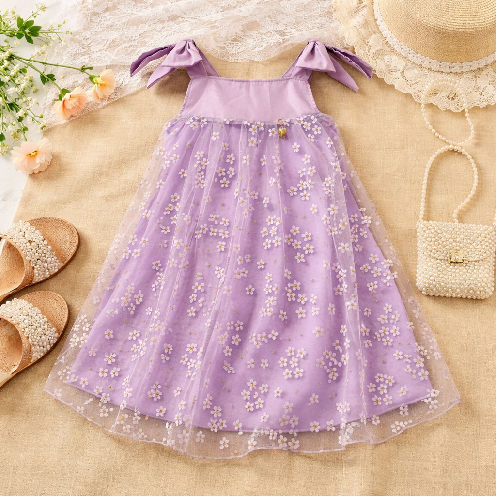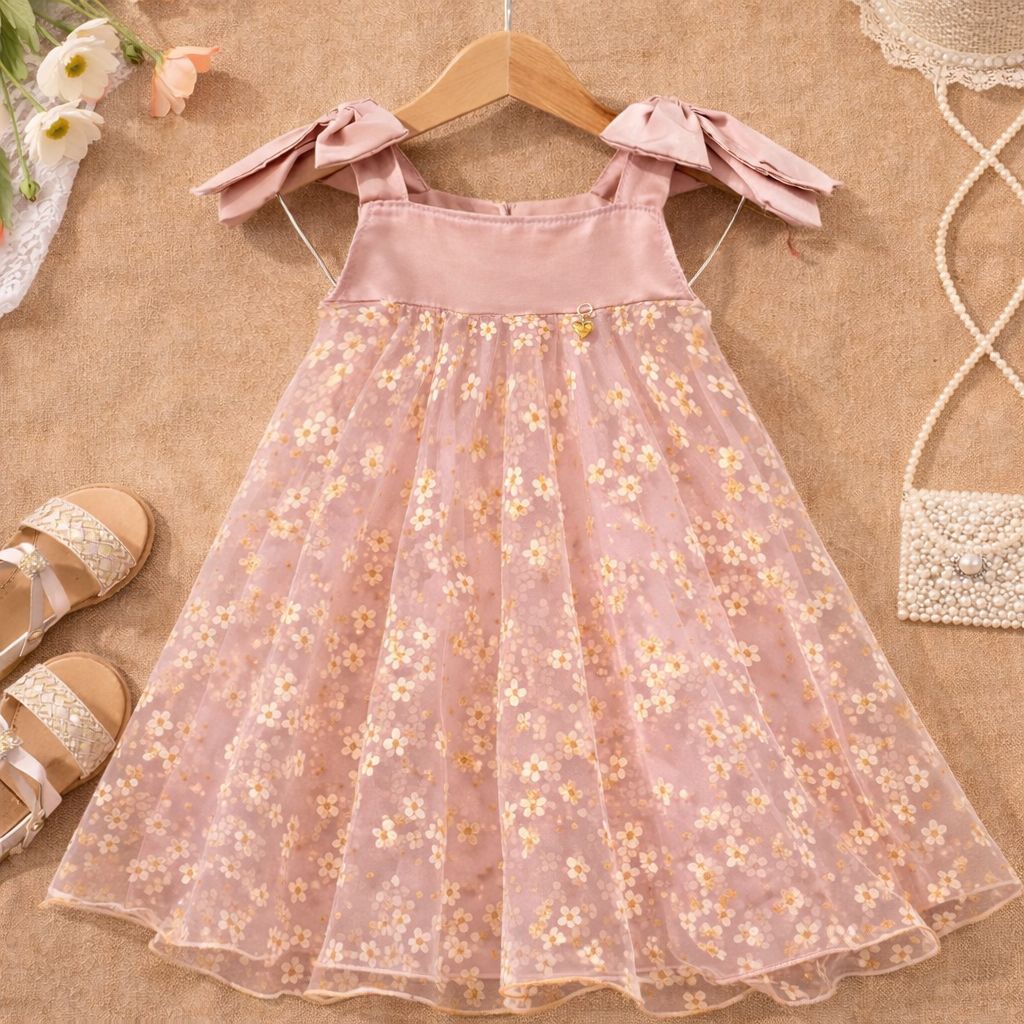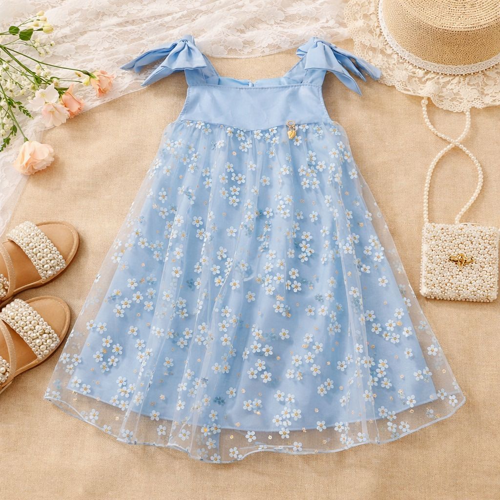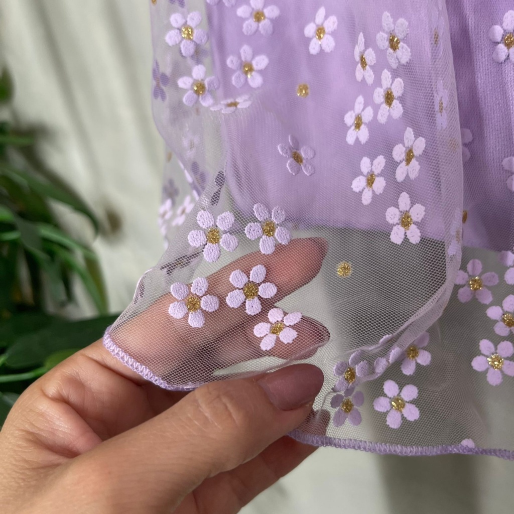 Vestido Infantil Tule com Florzinhas Luxo Festa Formatura Batizado Casamento Daminha