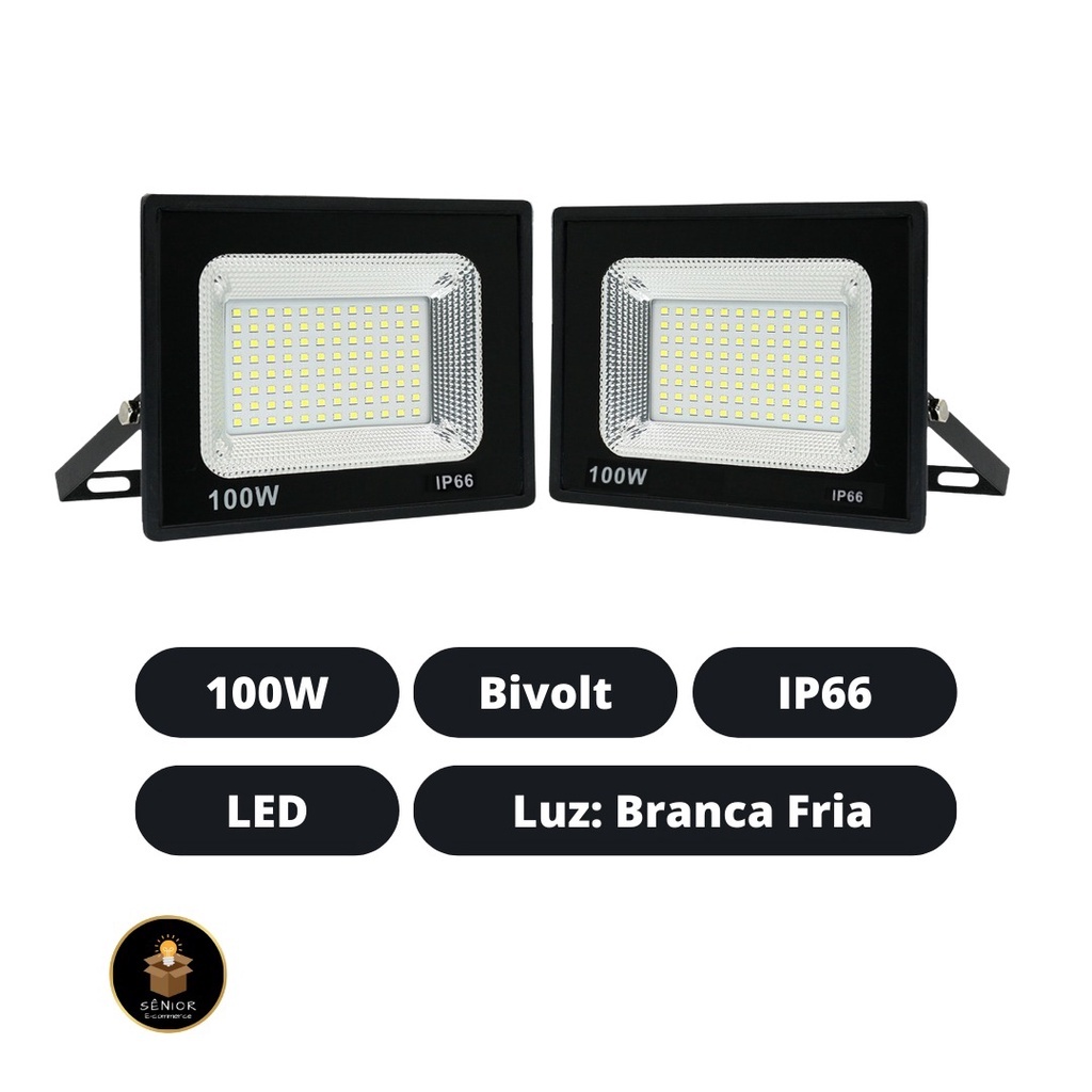 Kit 3 Refletor Led 100w Holofote Prova D'água Bivolt Luz Branco Frio