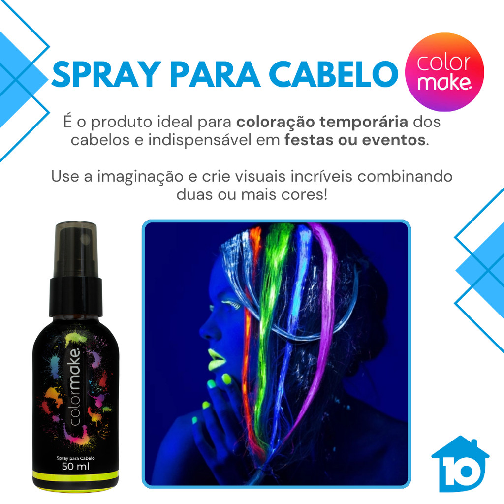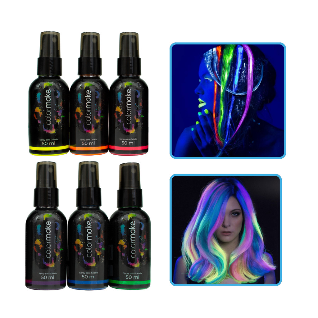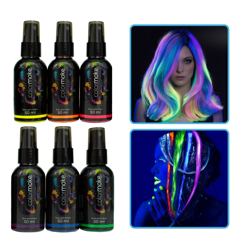 Spray Neon Para Cabelo Colormake 50ml Fluorescente UV Festa Carnaval Fantasia Balada Maquiagem Artística