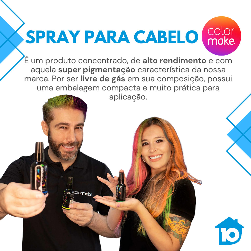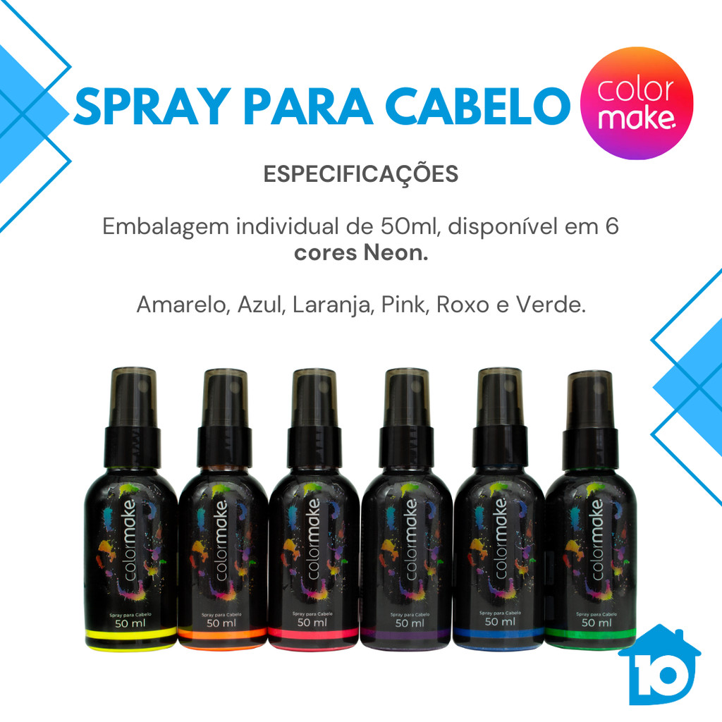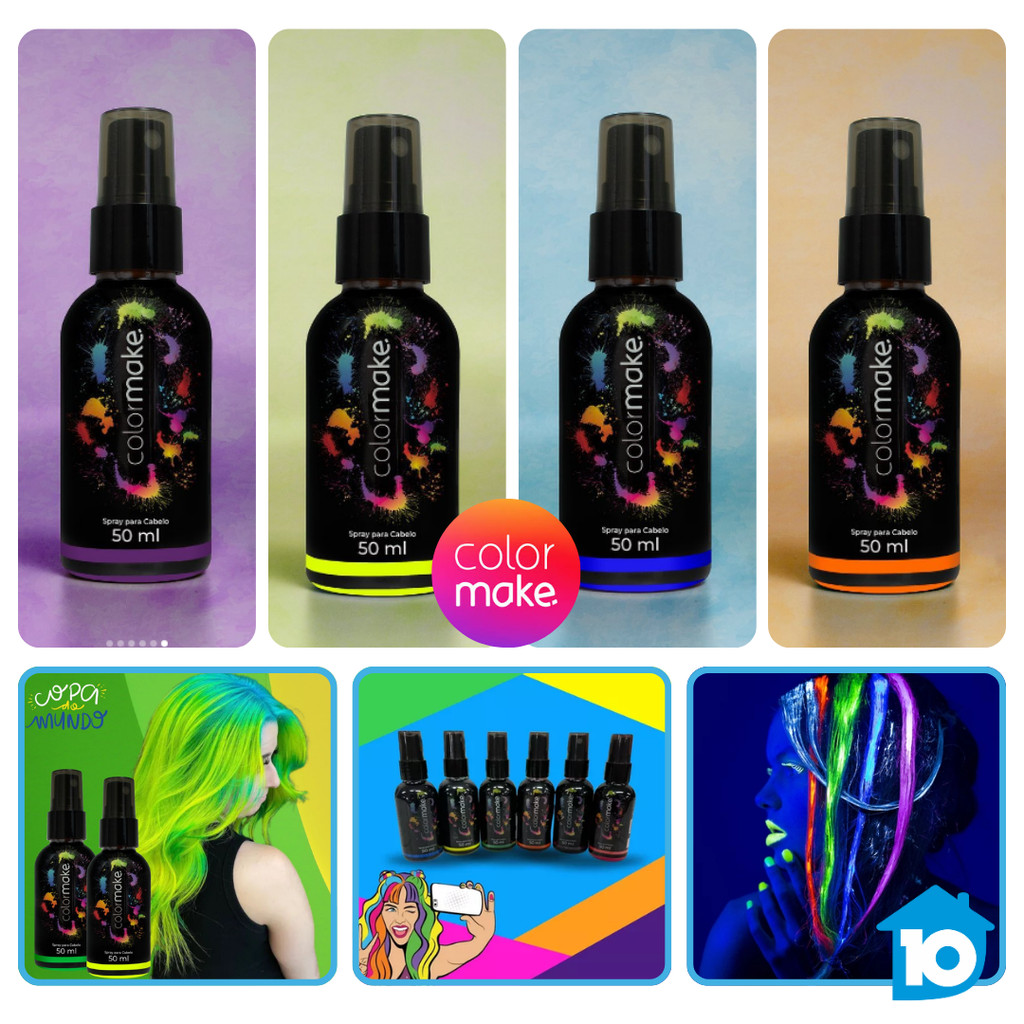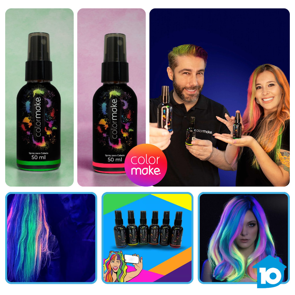 Spray Neon Para Cabelo Colormake 50ml Fluorescente UV Festa Carnaval Fantasia Balada Maquiagem Artística