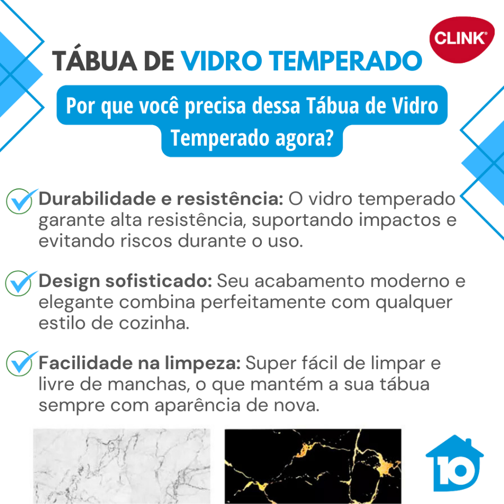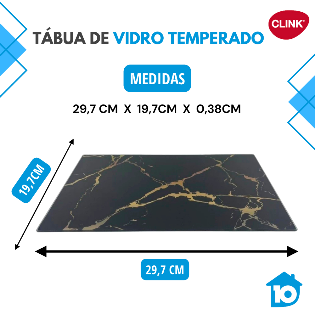 Tabua de Corte, Vidro Temperado, Marmorizados, Branco ou Preto, Ideal para Frios, Legumes, Churrasco 29,7 x 19,7 cm