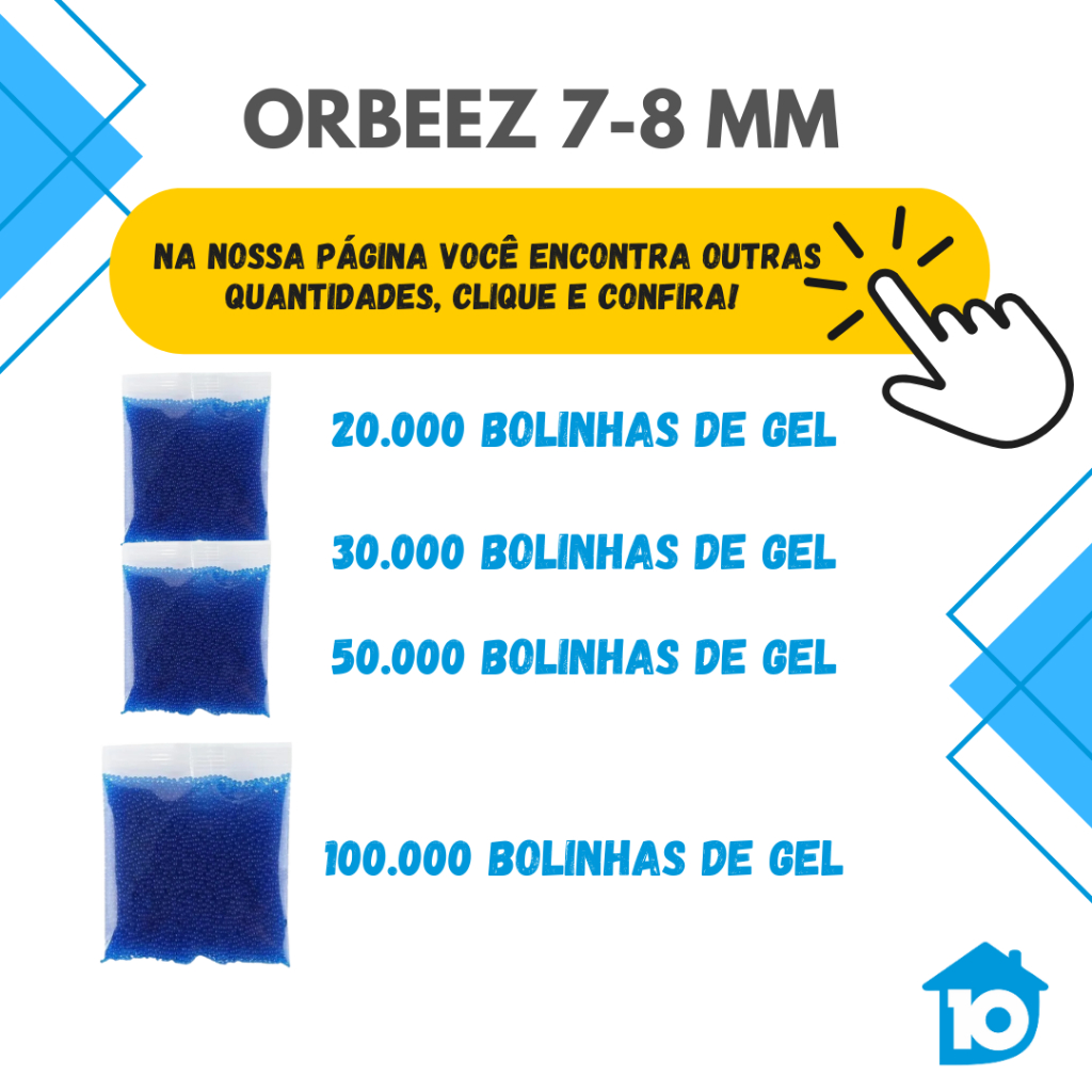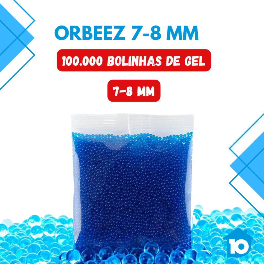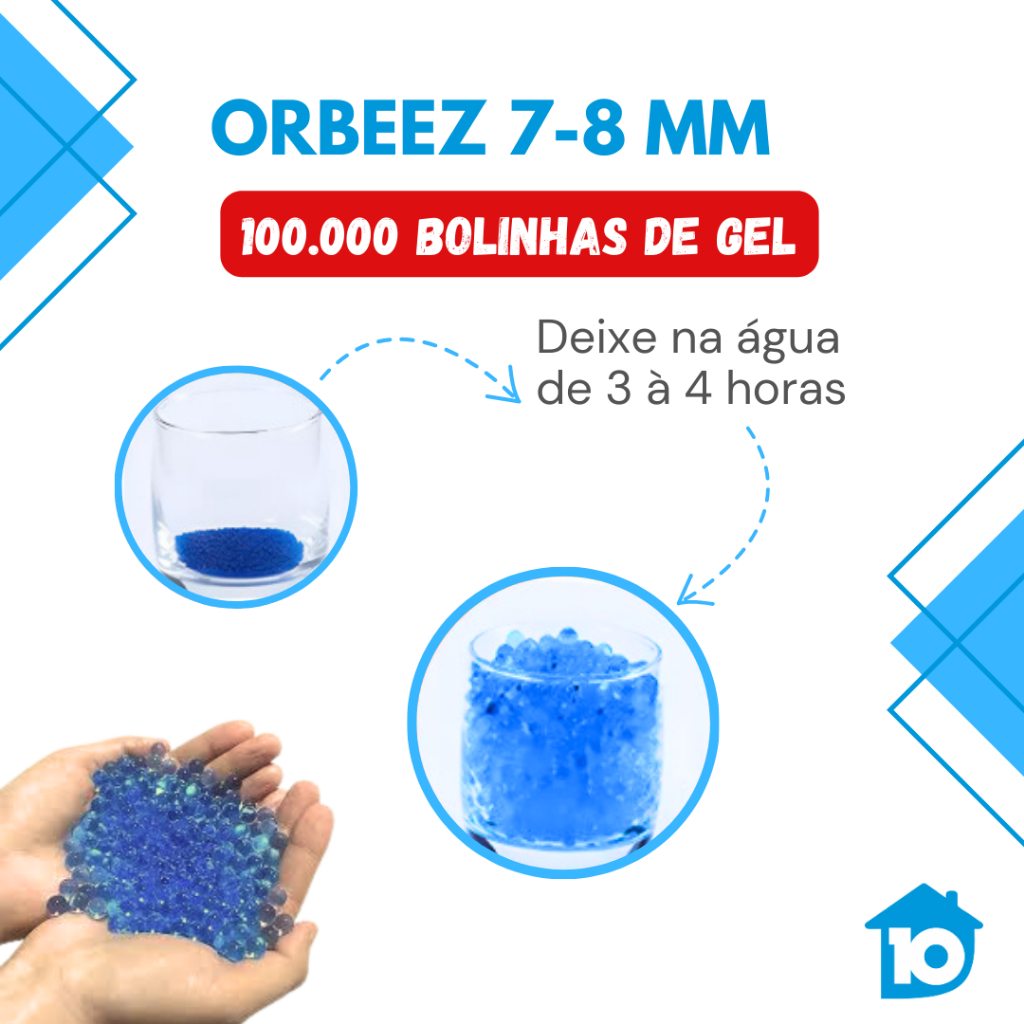 100.000 UNIDADES DE BOLINHAS DE GEL ORBEZZ (7-8 MM) AZUL, COLORIDA IDEAL ARMINHA DE GEL