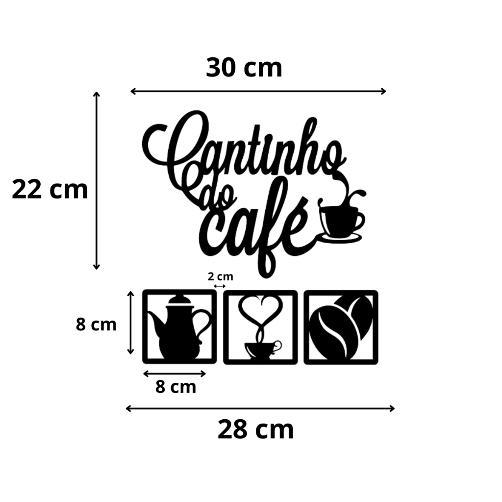 Kit Cantinho Do Café Quadro 4 Peças 30 cm Decoração Para Cozinha Com Dupla Face