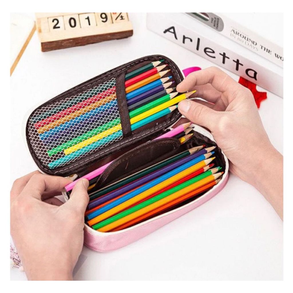 Confira Estojo De Lápis De Grande Capacidade Com Zíper Pen Bag Caixa De Caneta Lona Para Artigo De Papelaria Escola 9003