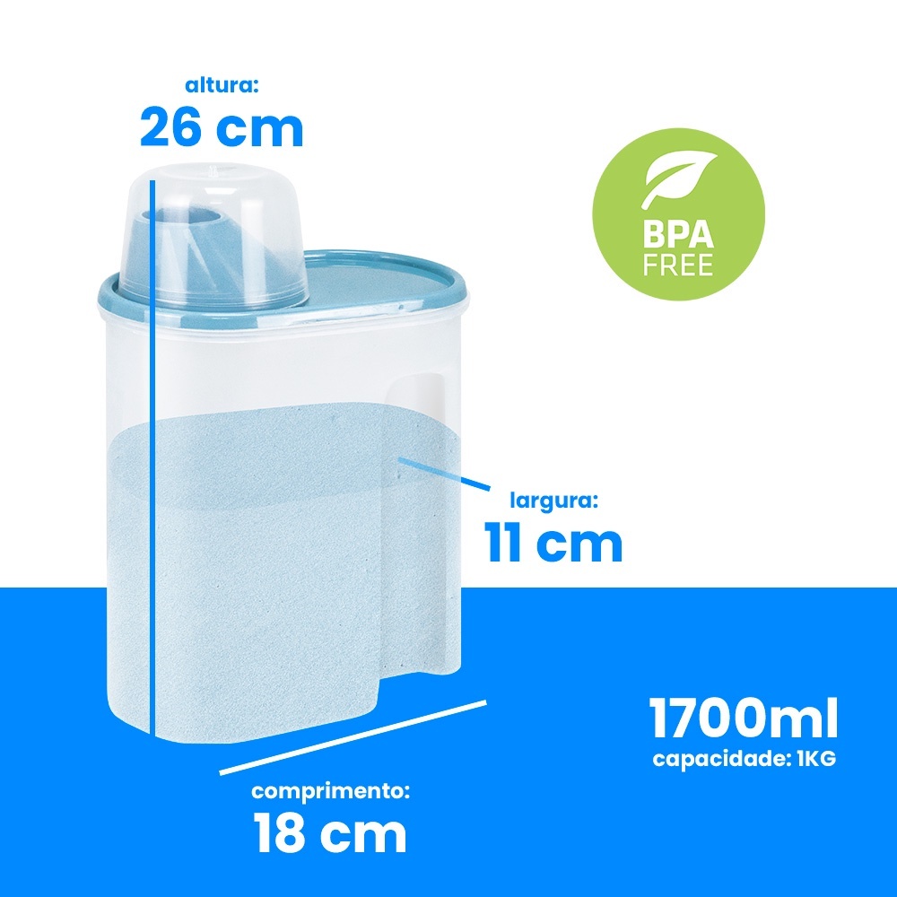 KIT com 2 unid. Jarra Multiuso Porta Sabão Organizador com Medidor - Resistente 1,7 Litros