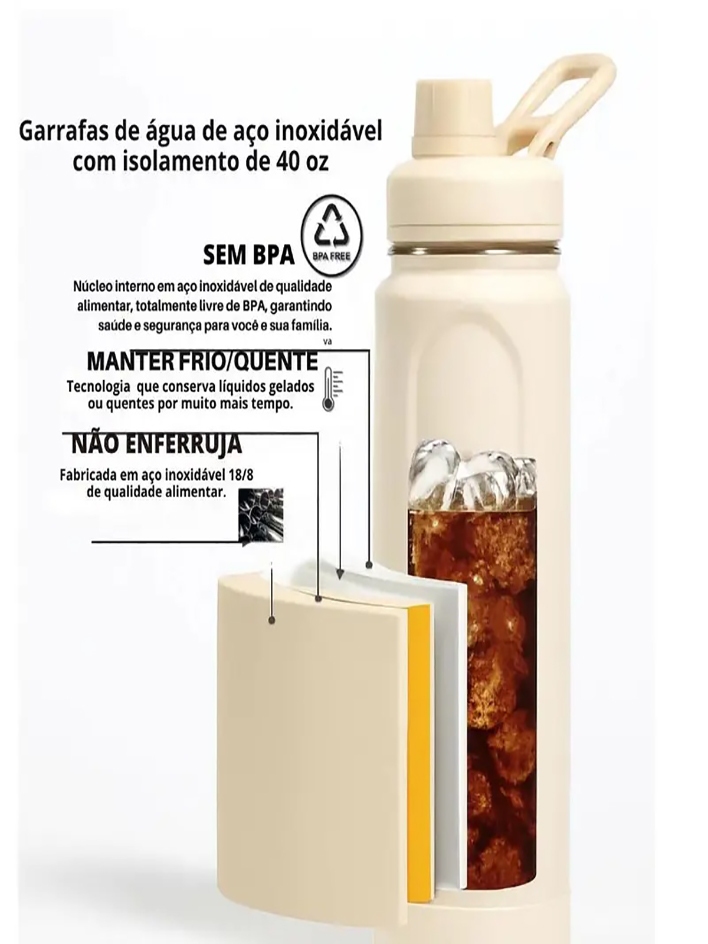 Garrafa Térmica Inox 800ml Esportiva Aço Inoxidável Quente e Frio Diversas Cores Durável Portátil