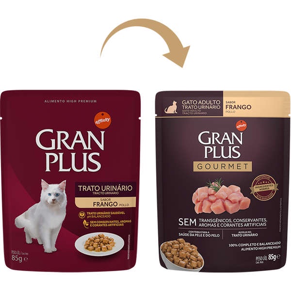 Caixa 18un Ração Úmida Granplus Sache Gato Trato Urinário Frango 85g