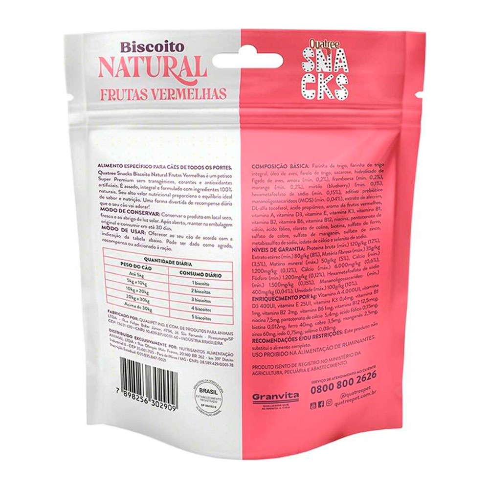 Biscoito Quatree Natural Snacks Para Cães Adultos Sabor Frutas Vermelhas 150g
