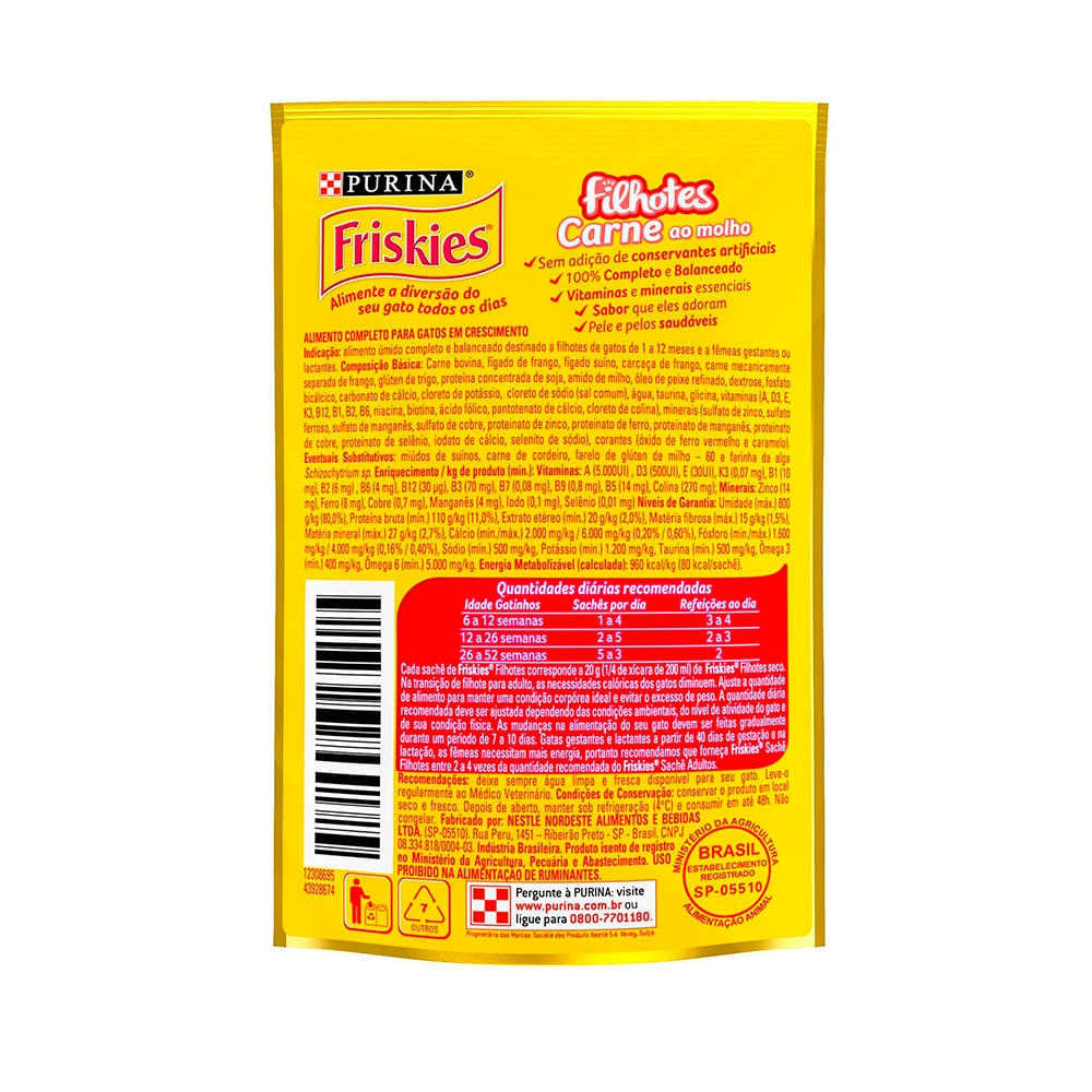 Caixa 15un Ração Úmida Sachê Friskies Gatos Filhotes Carne Ao Molho 85g