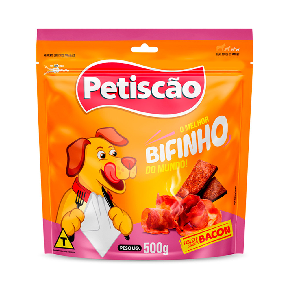 Bifinho Mastigável Petiscão Tablete Para Cães Bacon 500g
