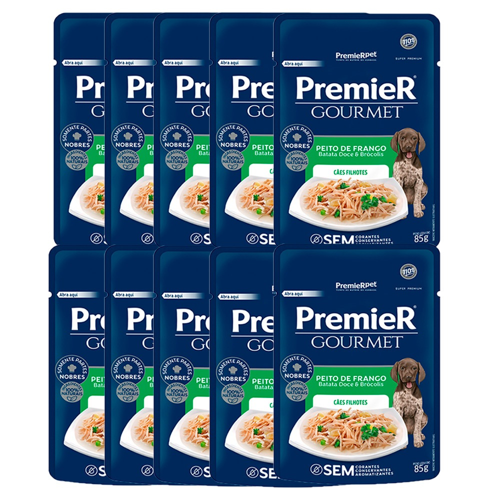 Kit 10un. Ração Úmida Premier Gourmet Cães Filhotes Peito de Frango Batata Doce e Brócolis 85g
