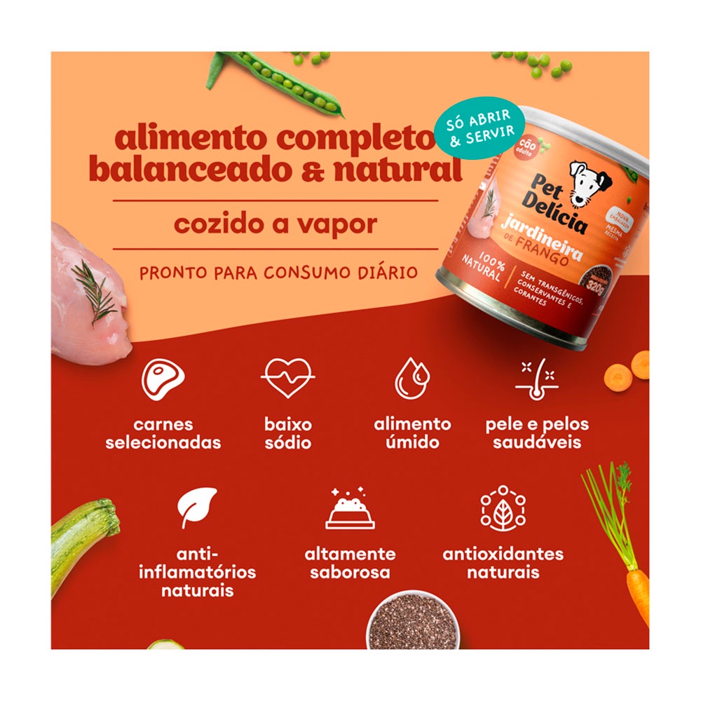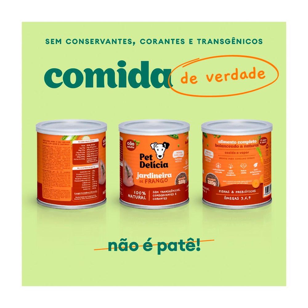 Ração Úmida Para Cães Adultos Pet Delícia Sabor Jardineira de Frango 320g