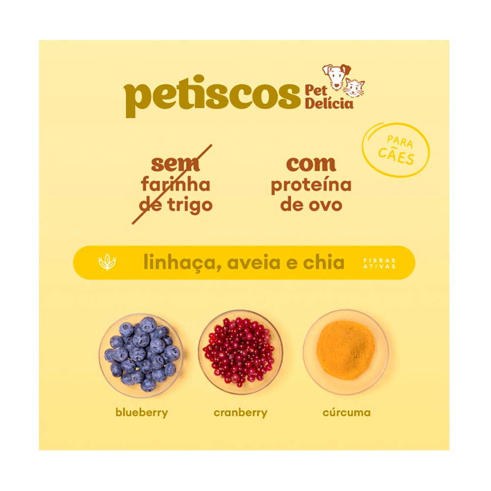 Petisco Natural Para Cães Antiox Detox Pet Delícia Blueberry, Cranberry e Cúrcuma 120g