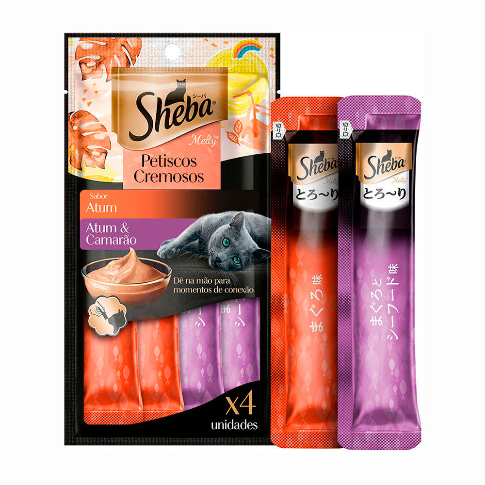 Petisco Sheba Cremoso Para Gatos Sabor Atum e Atum com Camarão 4 Unidades