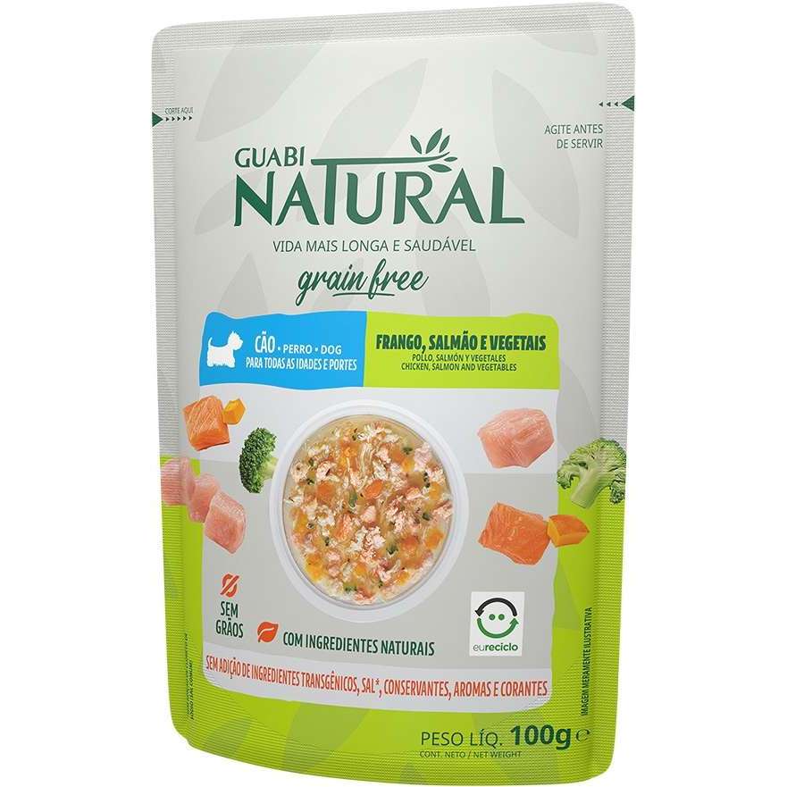 Kit 18un. Ração Úmida Guabi Natural Grain Free Sachê Cães Adultos Frango, Salmão e Vegetais 100g