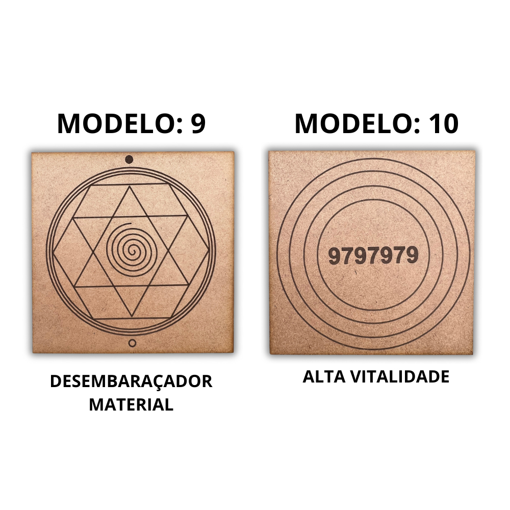 Kit 2 Gráficos Radiônicos MDF 3mm 20x20cm - Radiestesia - Modelos 9 e 10 (Desembaraçador Material e Alta Vitalidade)