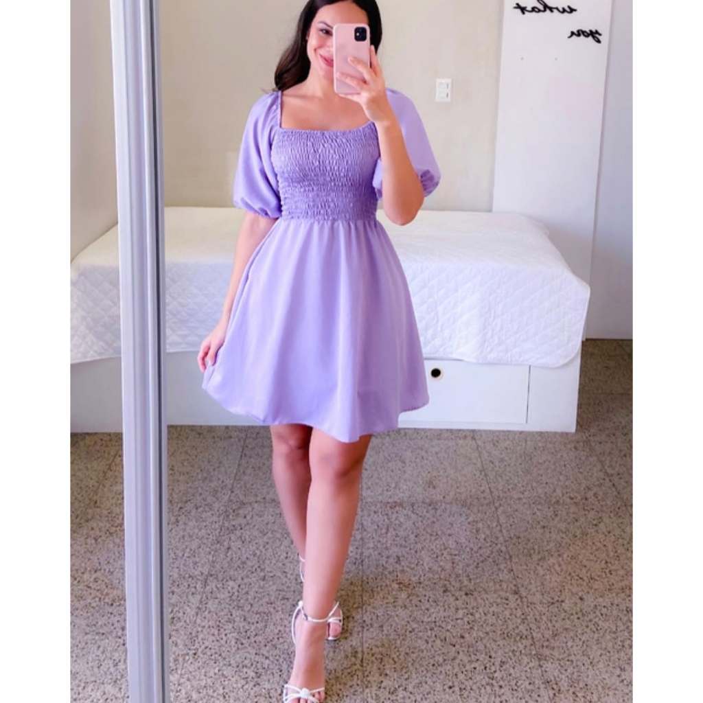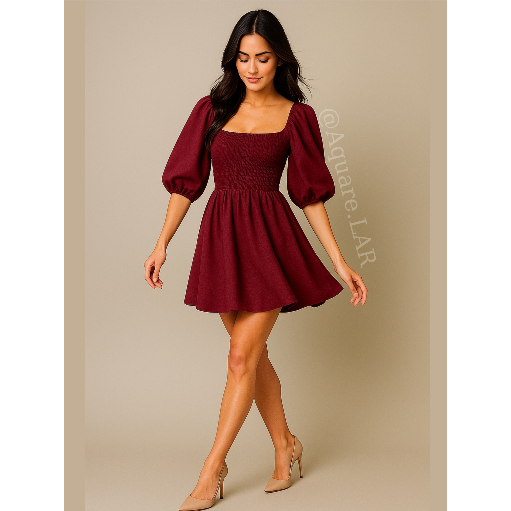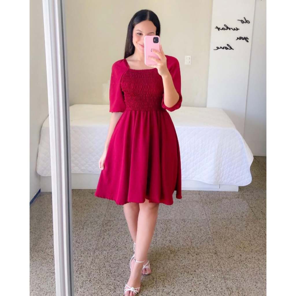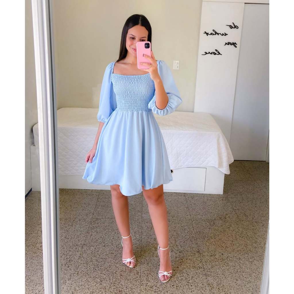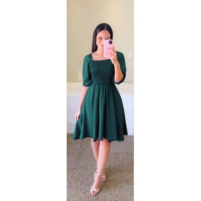 Vestido Feminino Elegante Elastex Rodado Manga Princesa Bufante Não Amassa Moda Modesta Romântica Blogueira REF 82