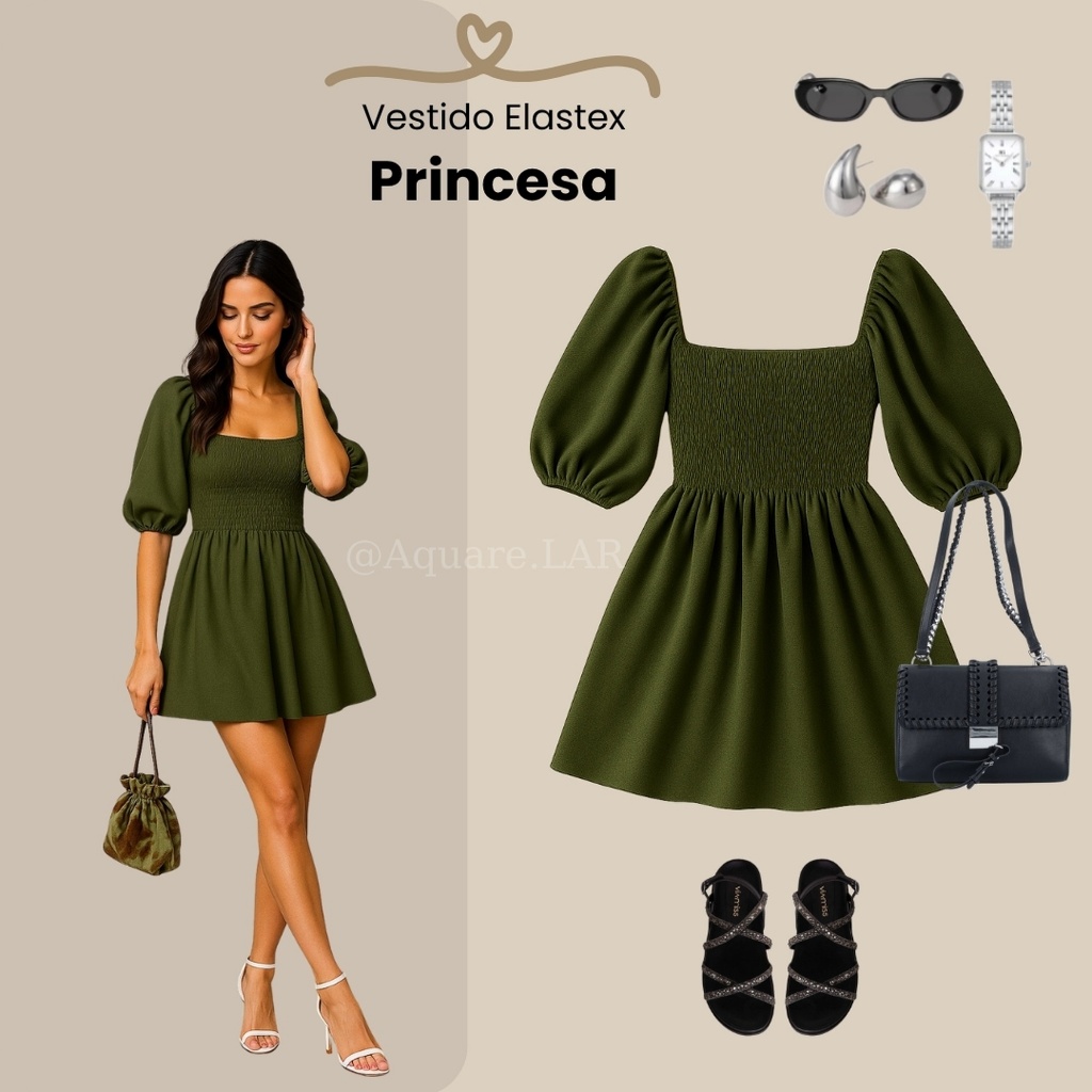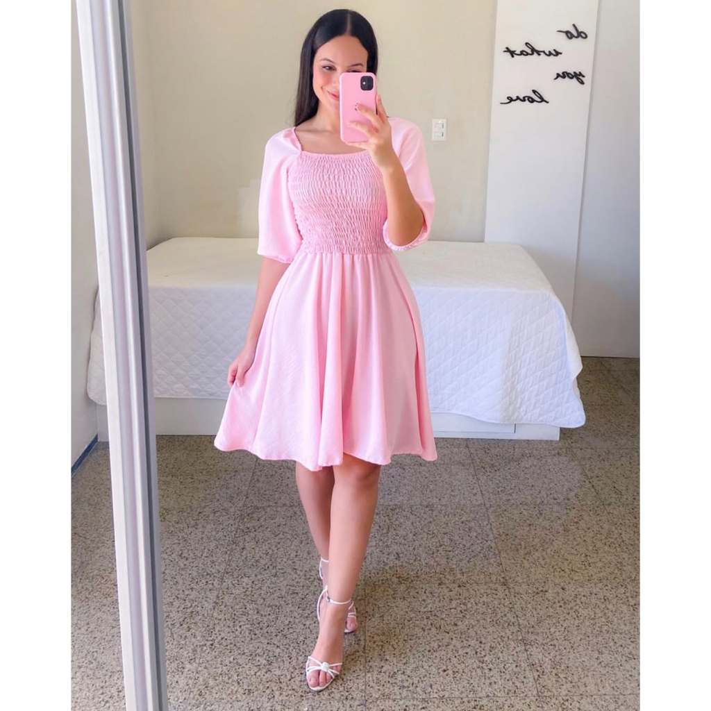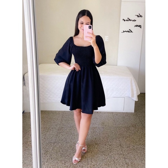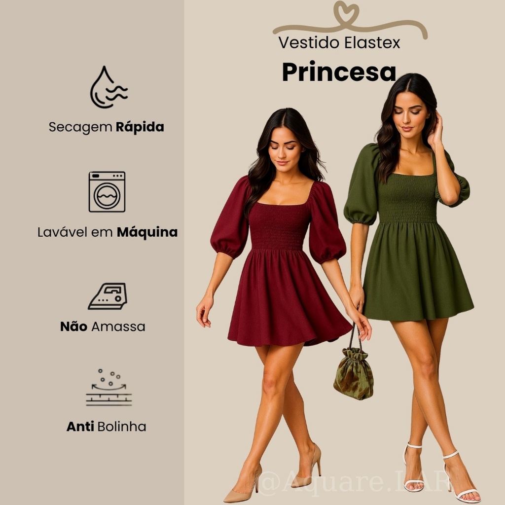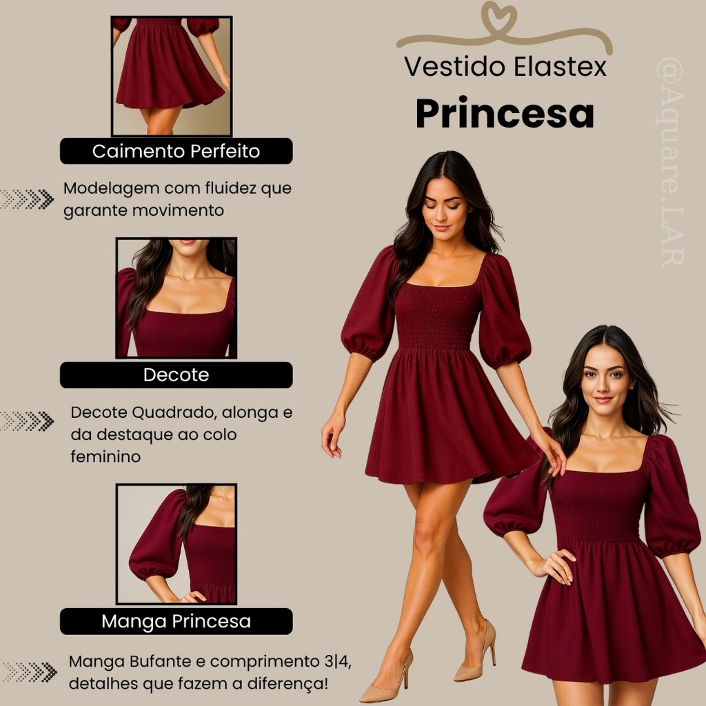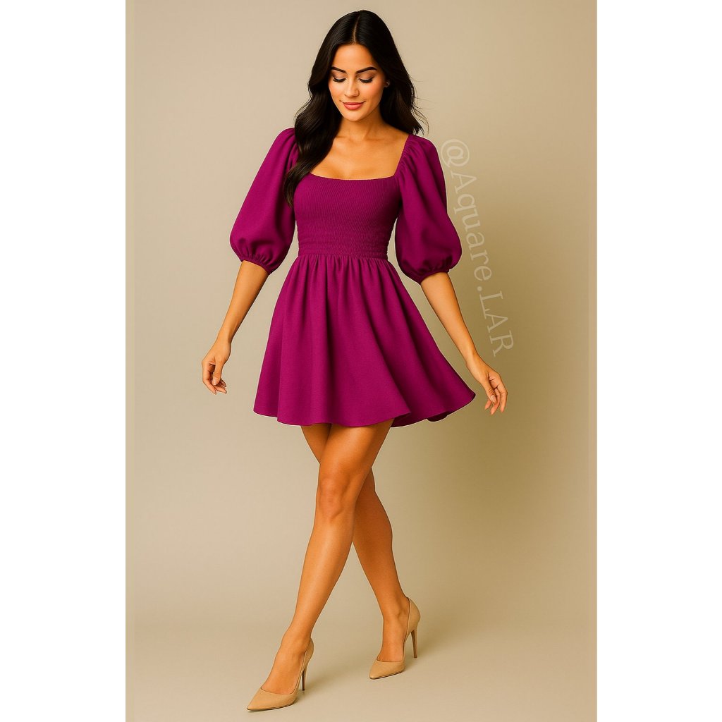 Vestido Feminino Elegante Elastex Rodado Manga Princesa Bufante Não Amassa Moda Modesta Romântica Blogueira REF 82