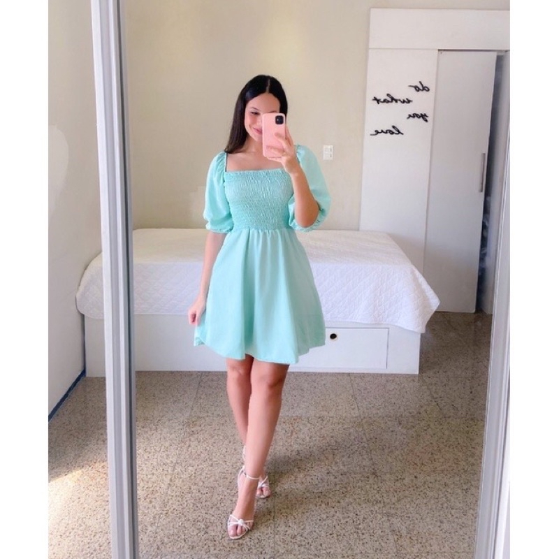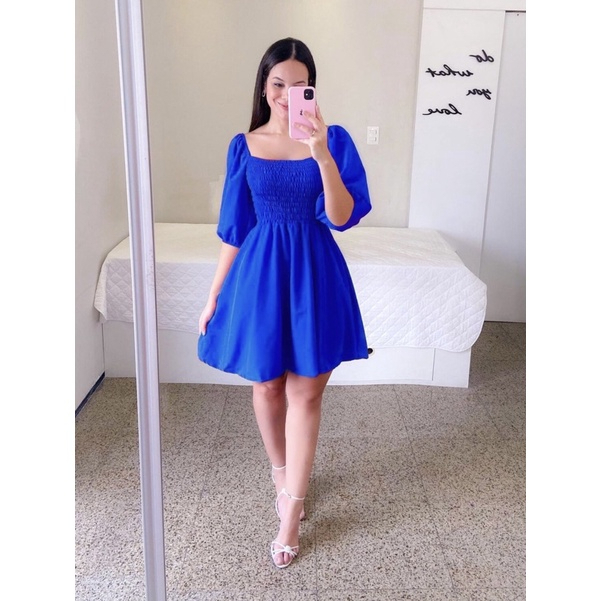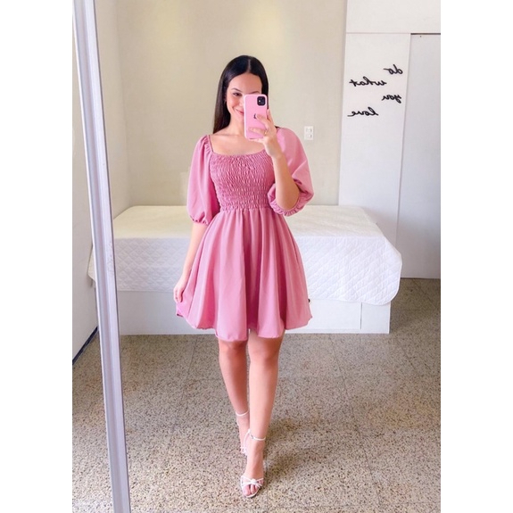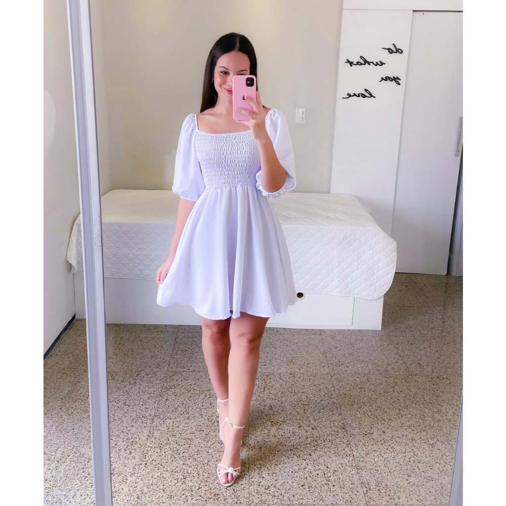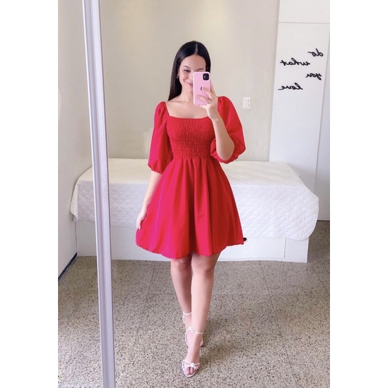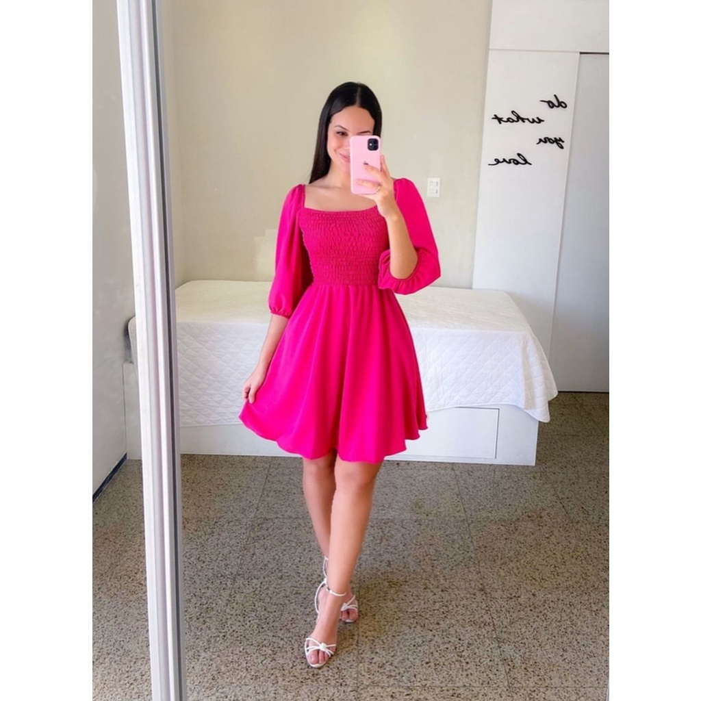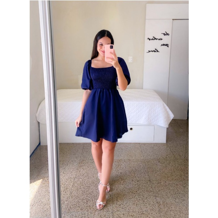 Vestido Feminino Elegante Elastex Rodado Manga Princesa Bufante Não Amassa Moda Modesta Romântica Blogueira REF 82