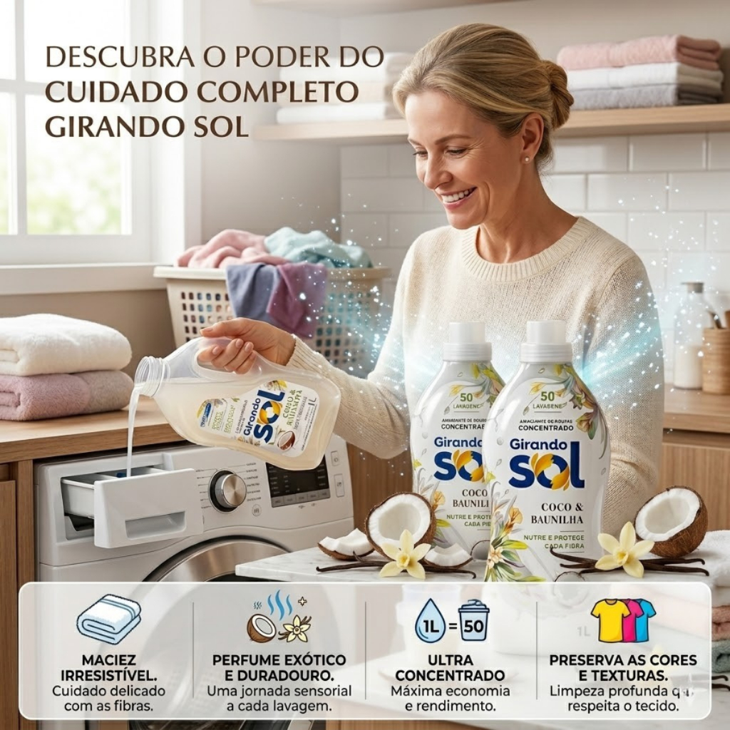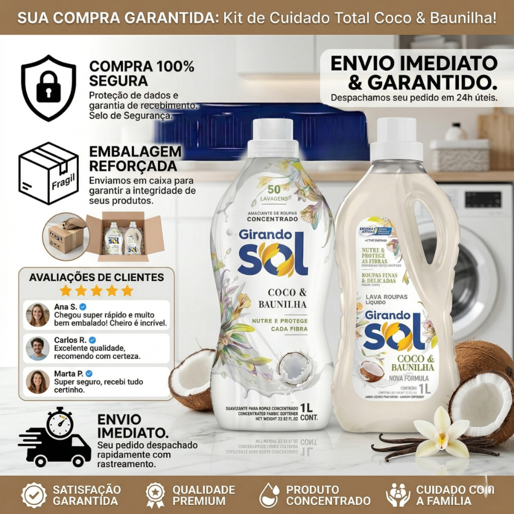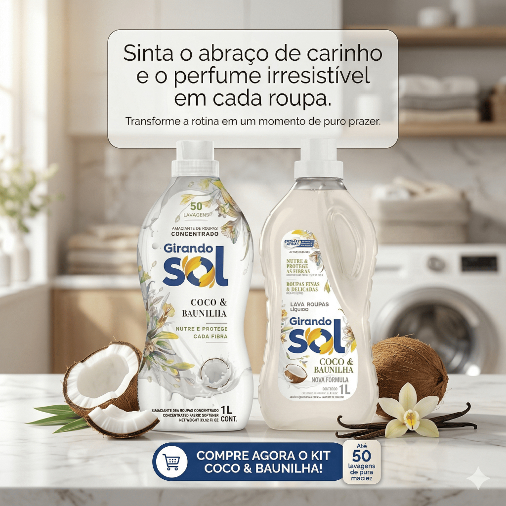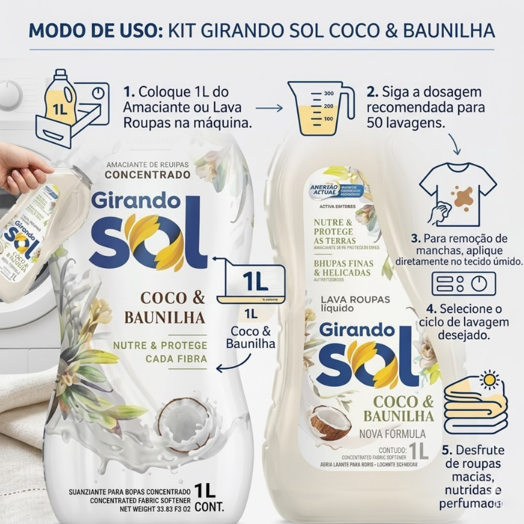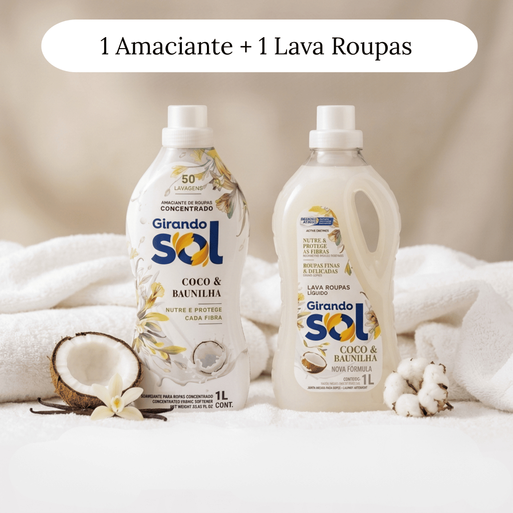 Amaciante Perfumado Concentrado 1L + Sabão Líquido 1L - Duradoura - Rende 50 Lavagens Roupas Macias