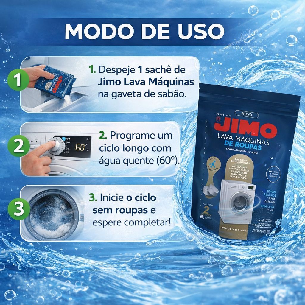 Jimo Lava Máquina de Lavar Roupa Pastilha 20g - Kit C/ 2, 4, 6 e 8 Un - Remove Odor Sem Cloro