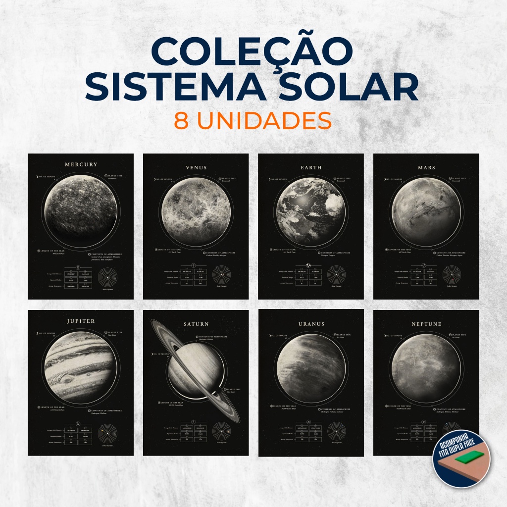 Coleção completa quadros sistema solar (20x28 cm cada) | decoração, espaço