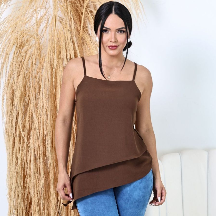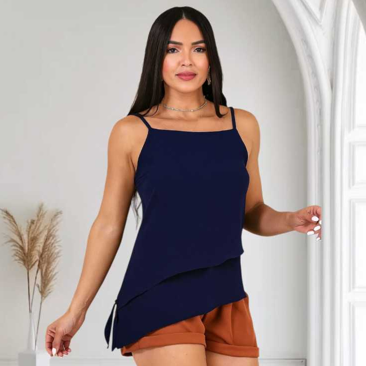 Blusa Regata Assimétrica Feminina Alça Regulável Social,Luxo