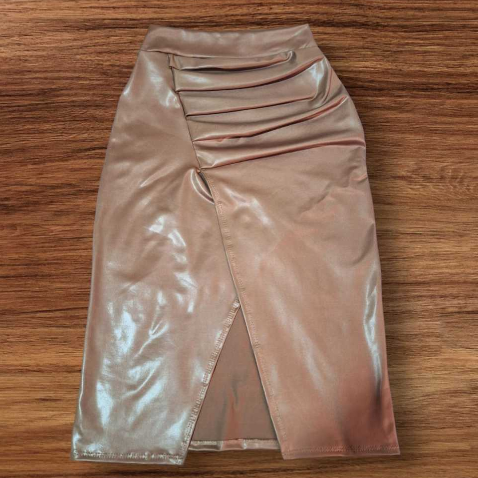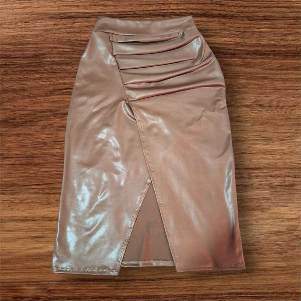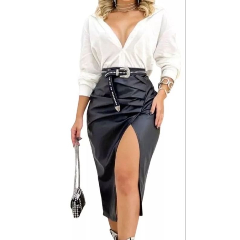 Saia Midi Fenda Cintura Alta Cirre